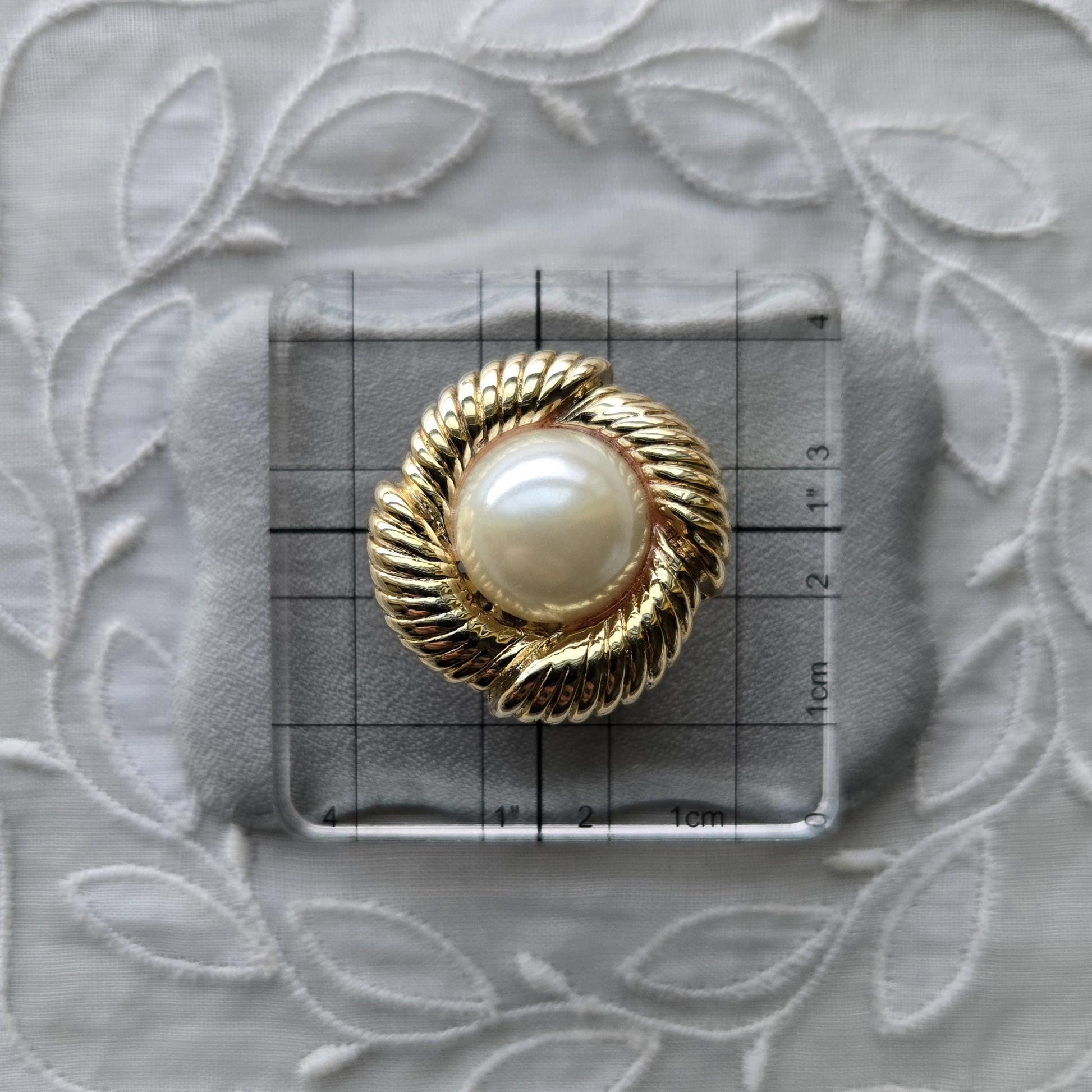 Clip on - Round Pearl with Stylised Leaves Clip on Earrings