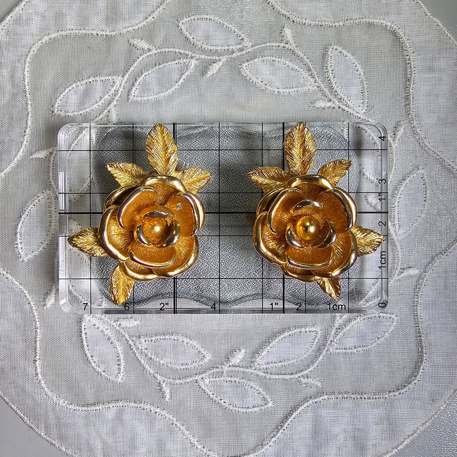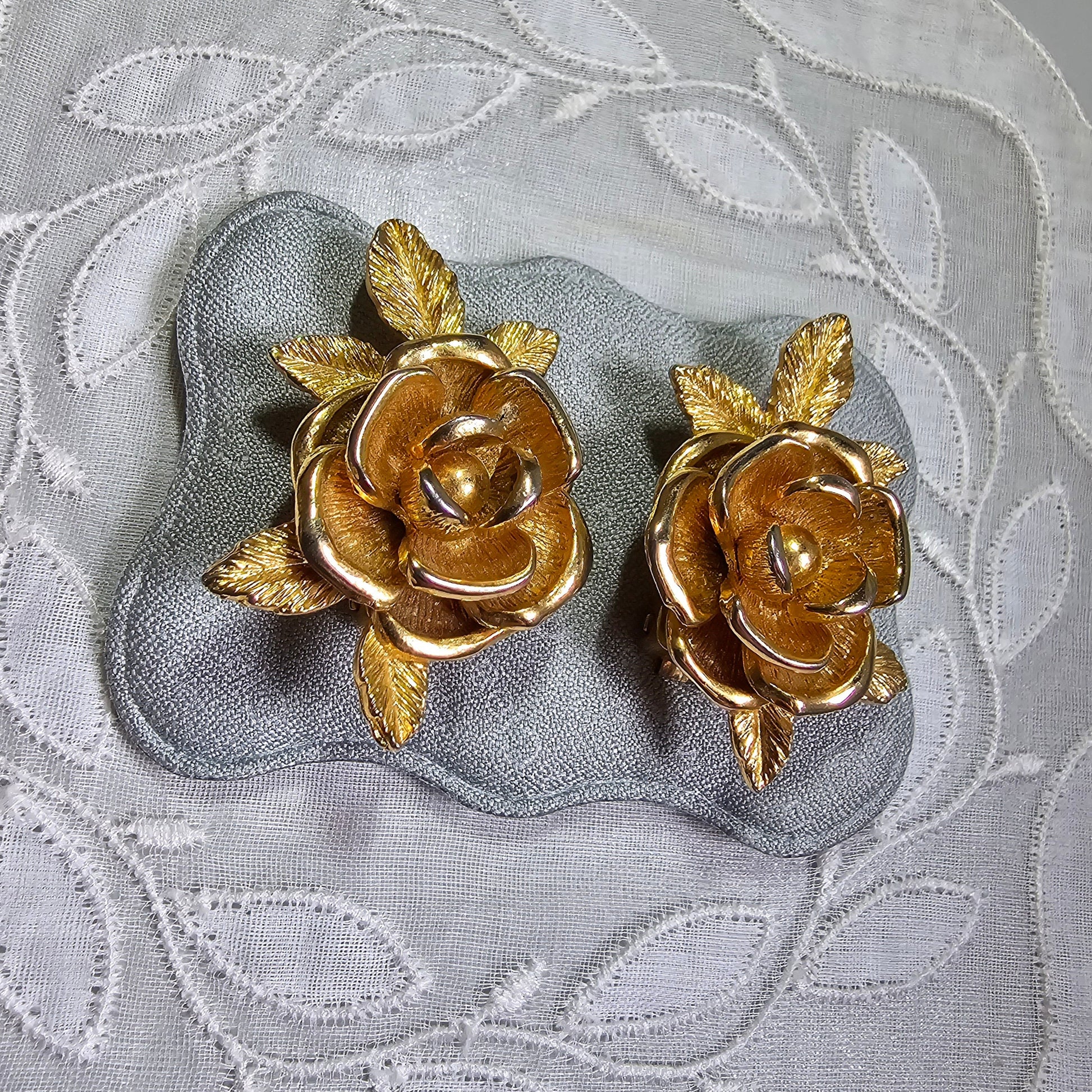 A beautiful pair of rose earrings by Sarah Coventry in gold plated metal