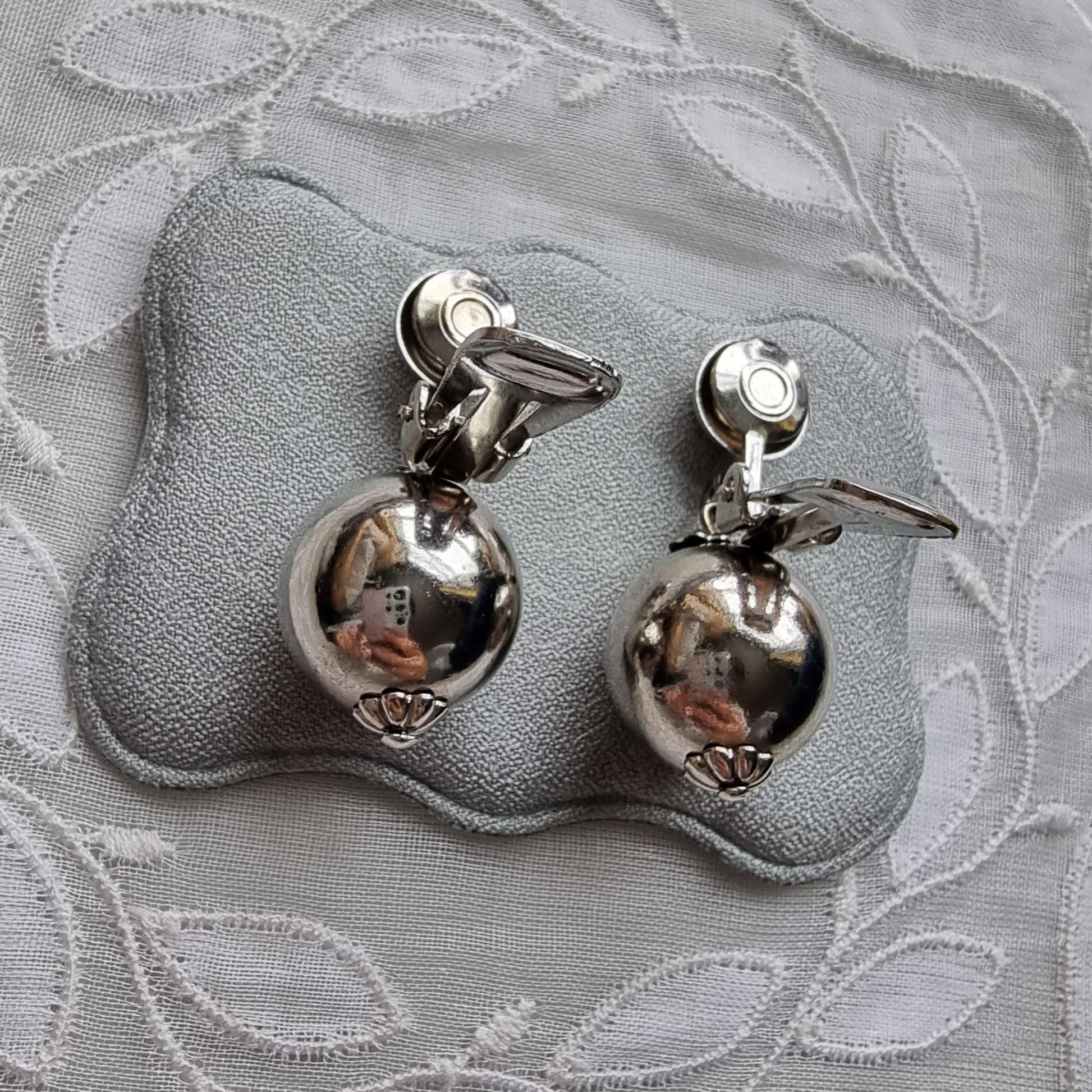 Clip on - Silver Tone Ball Drop Clip On Earrings