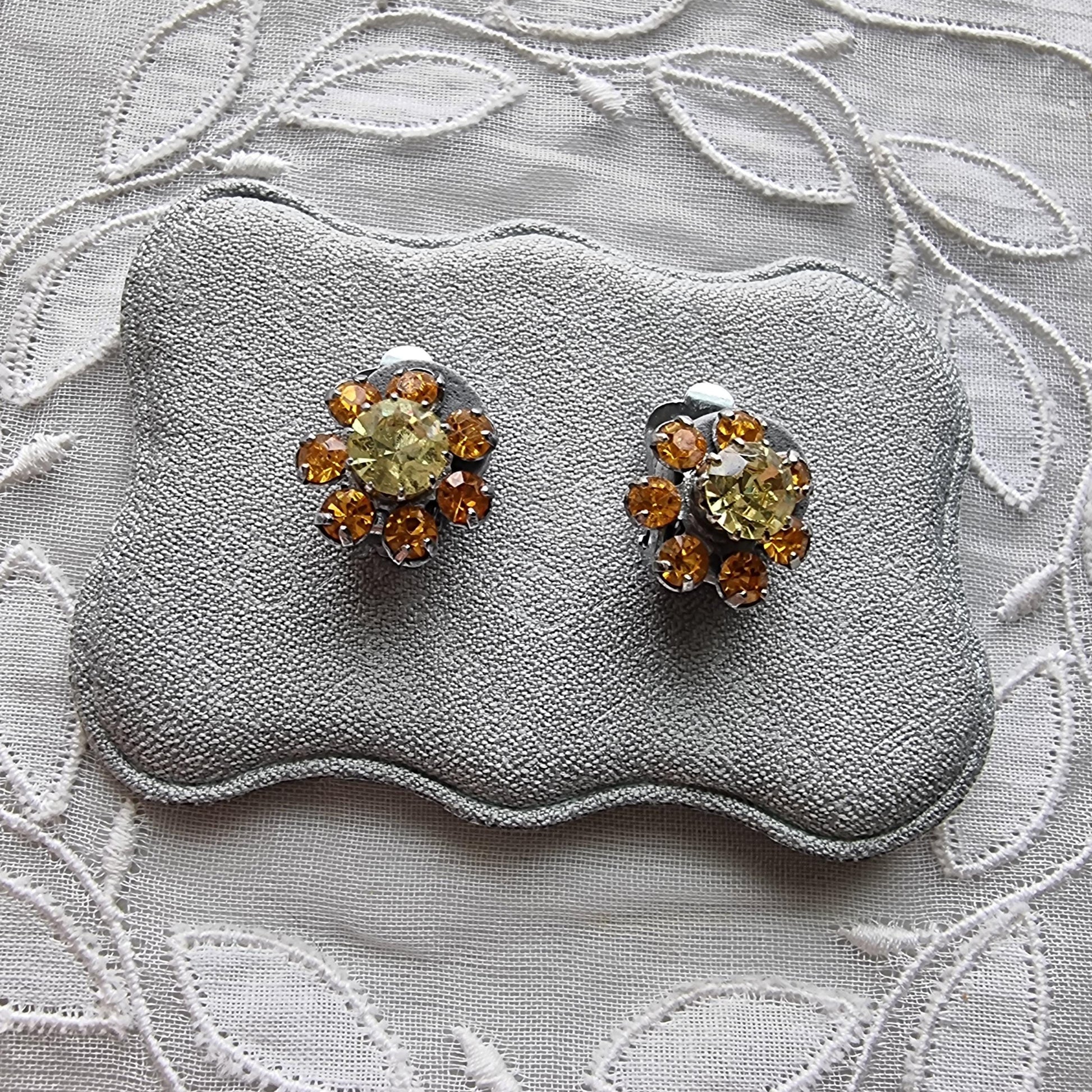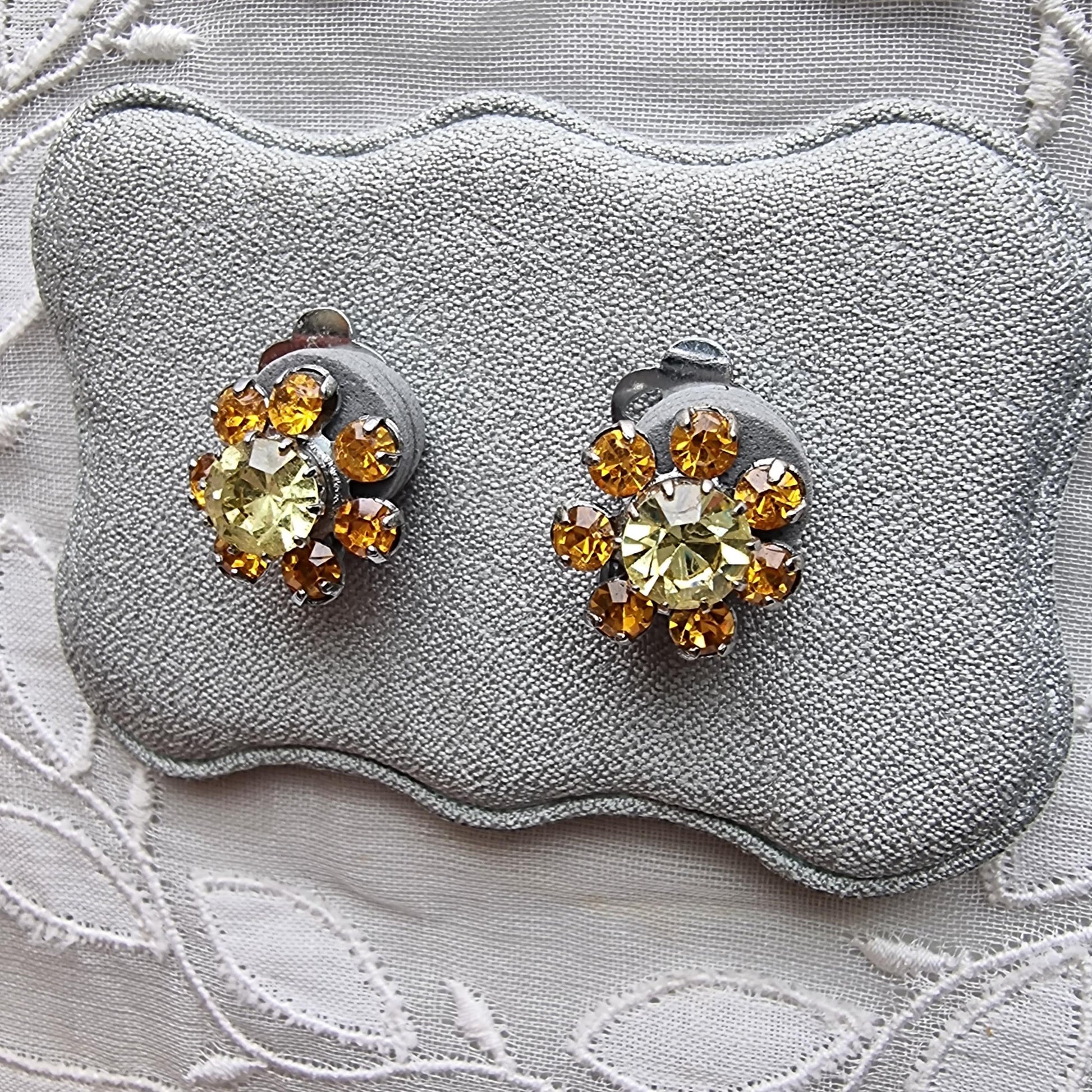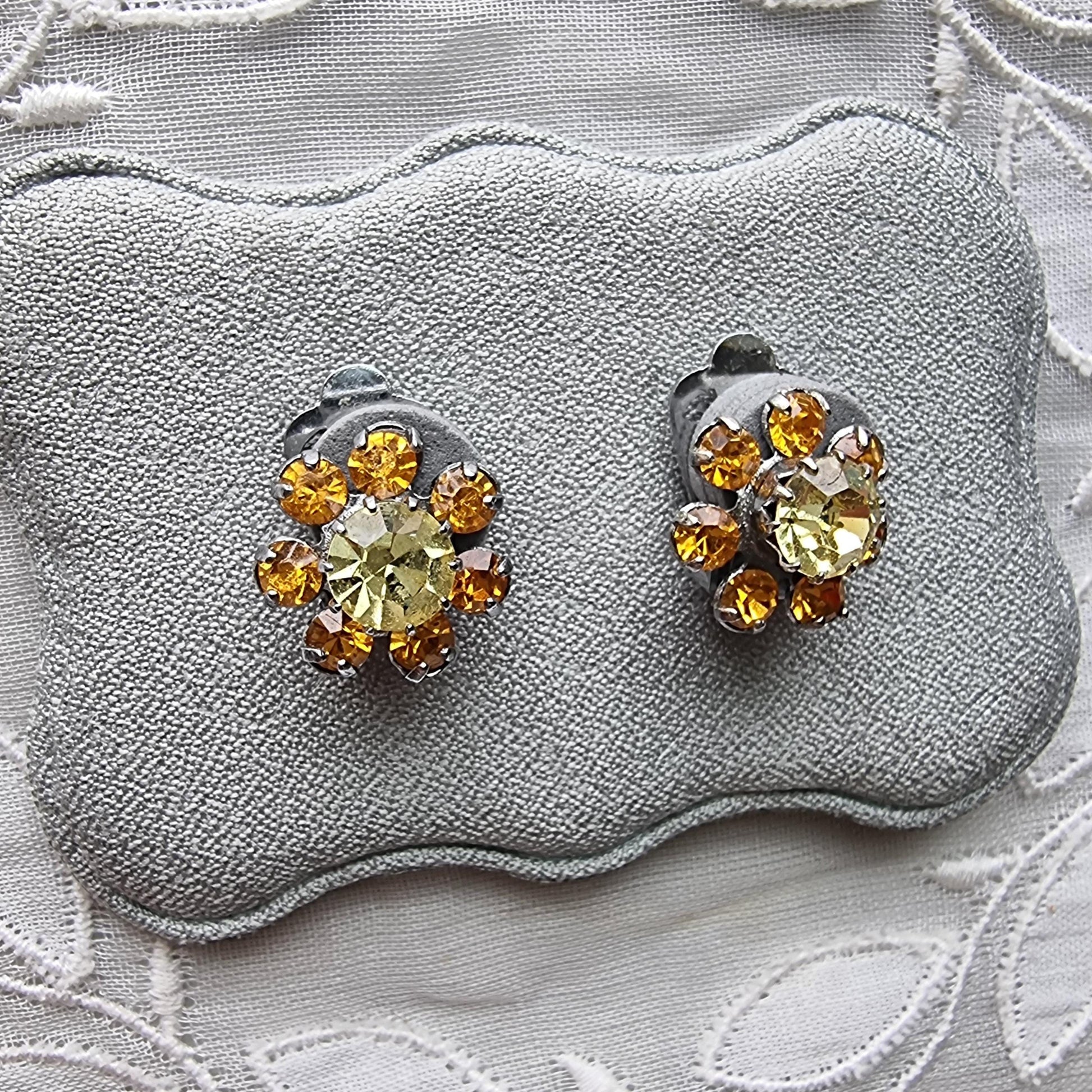 Clip on - Small Yellow and Orange Crystals Clip on Earrings