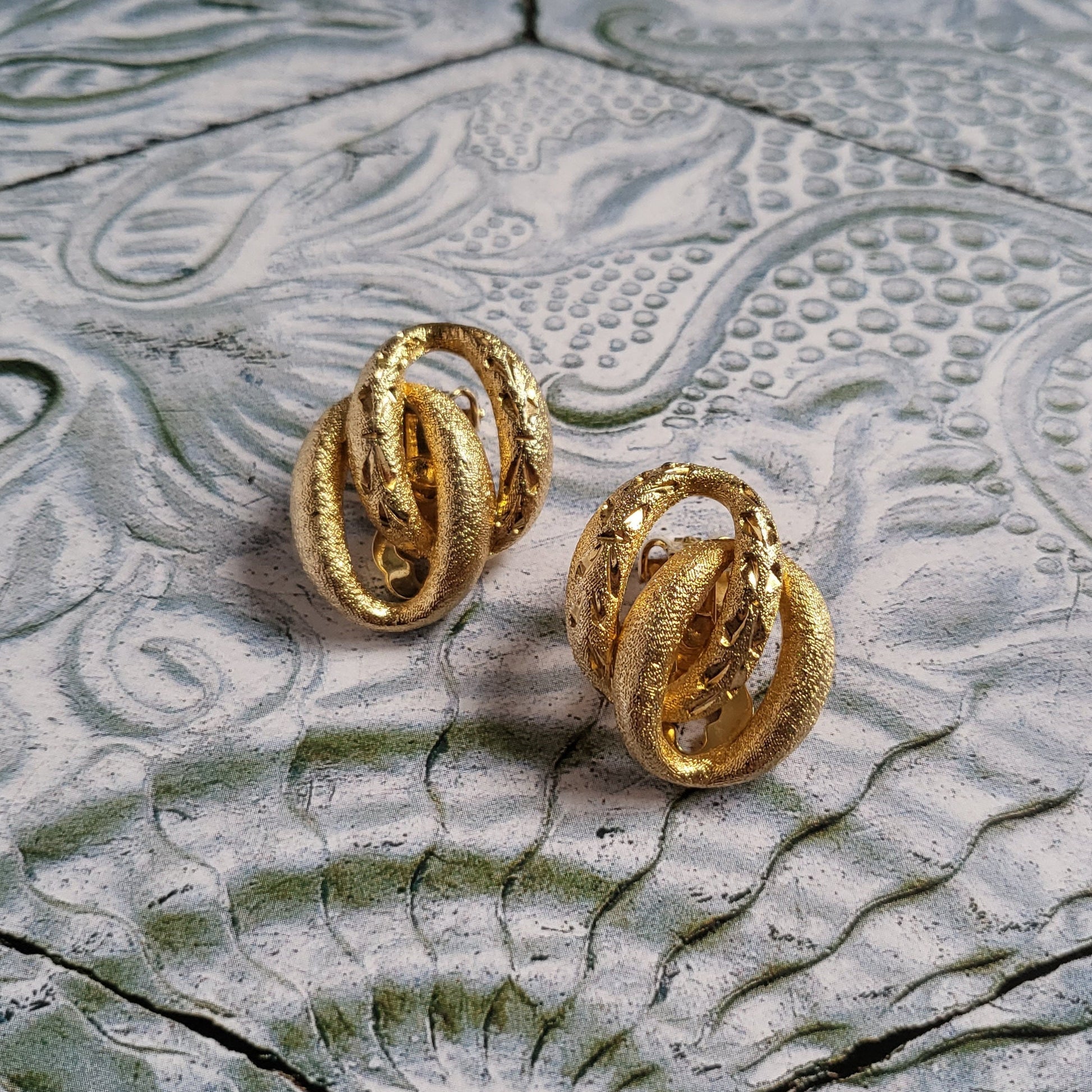 A classic chunky chain link clip on earrings by Sphinx in textured and etched gold plated metal
