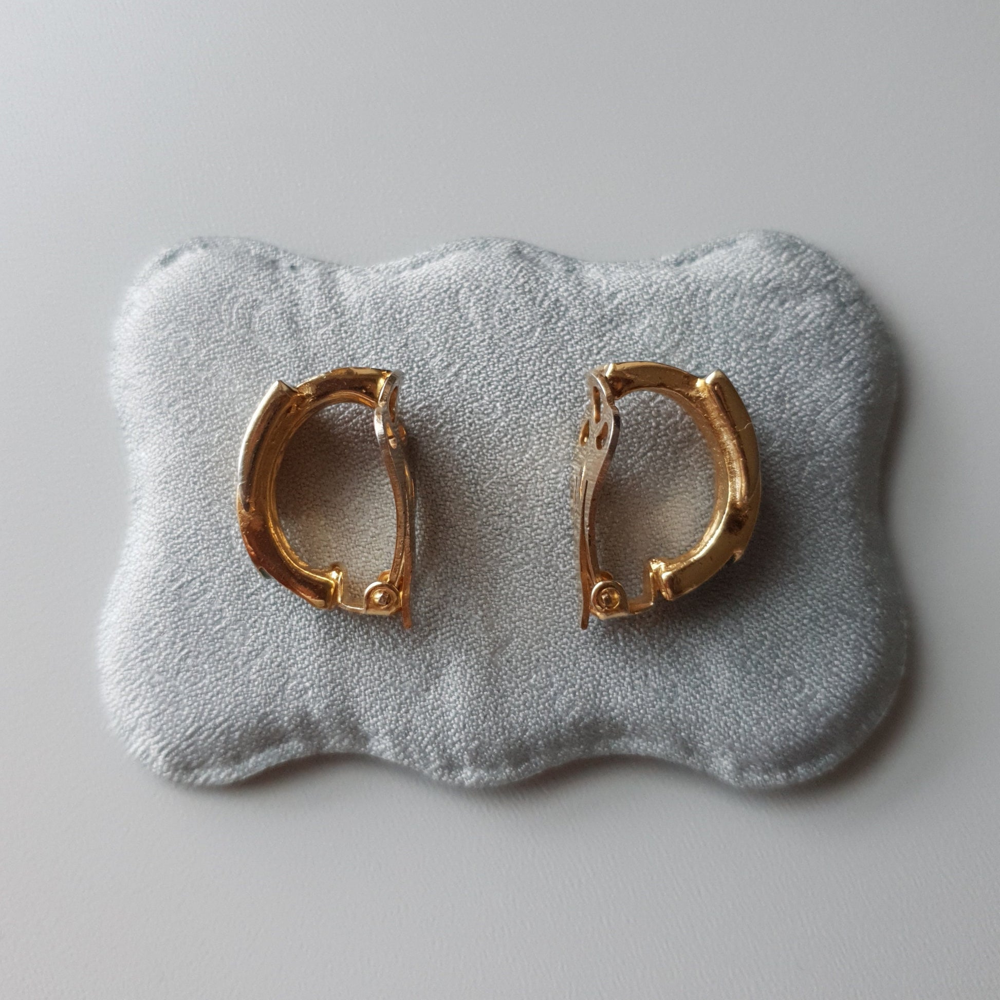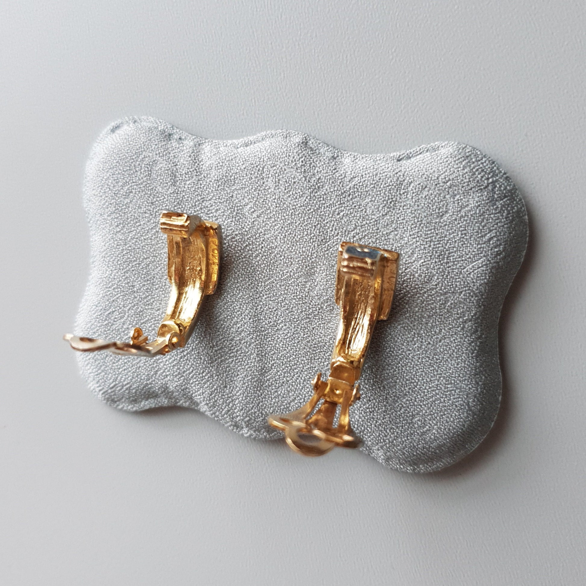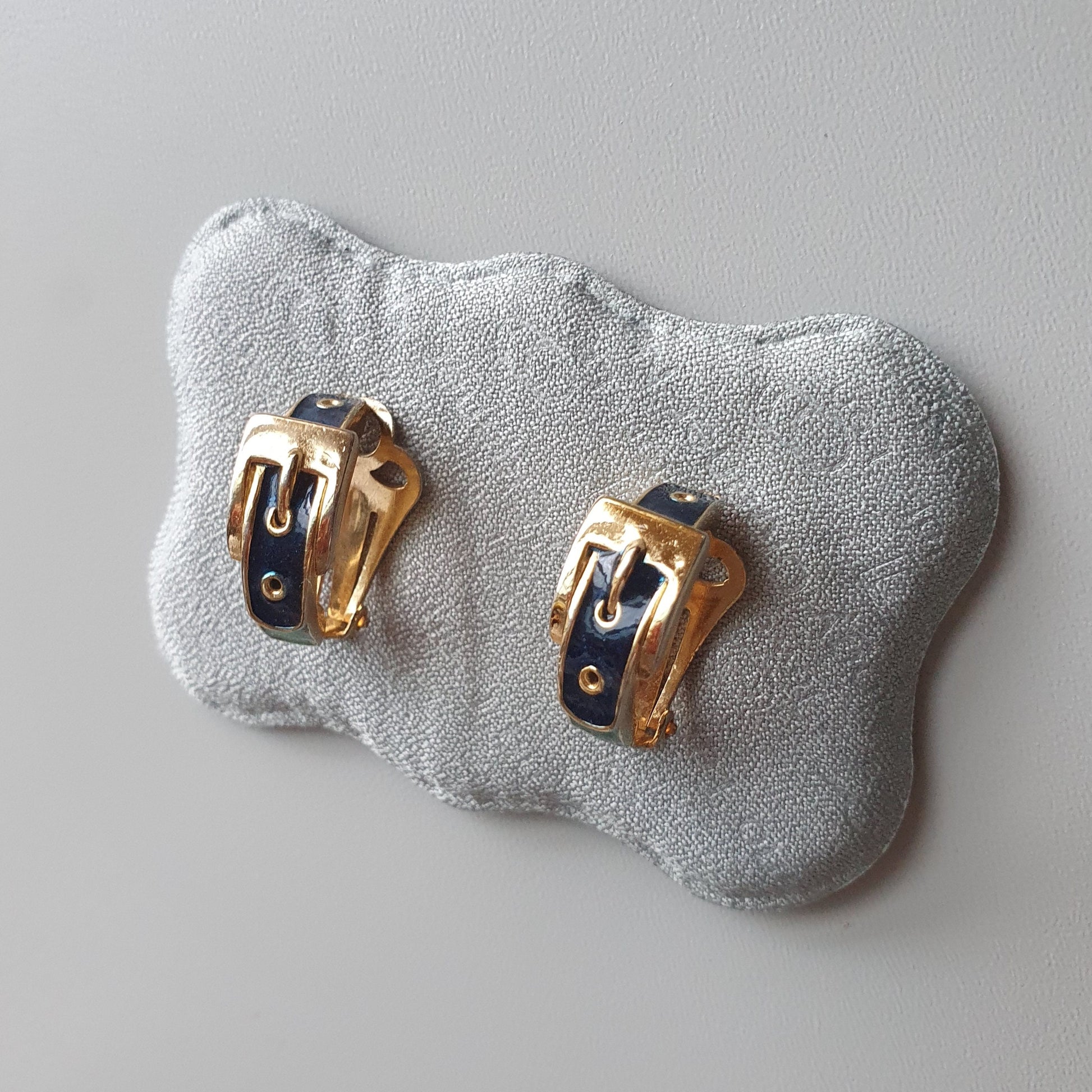 A very fun pair of small belt design clip on earrings in green and blue enamel on gold plated metal by Sphinx of London