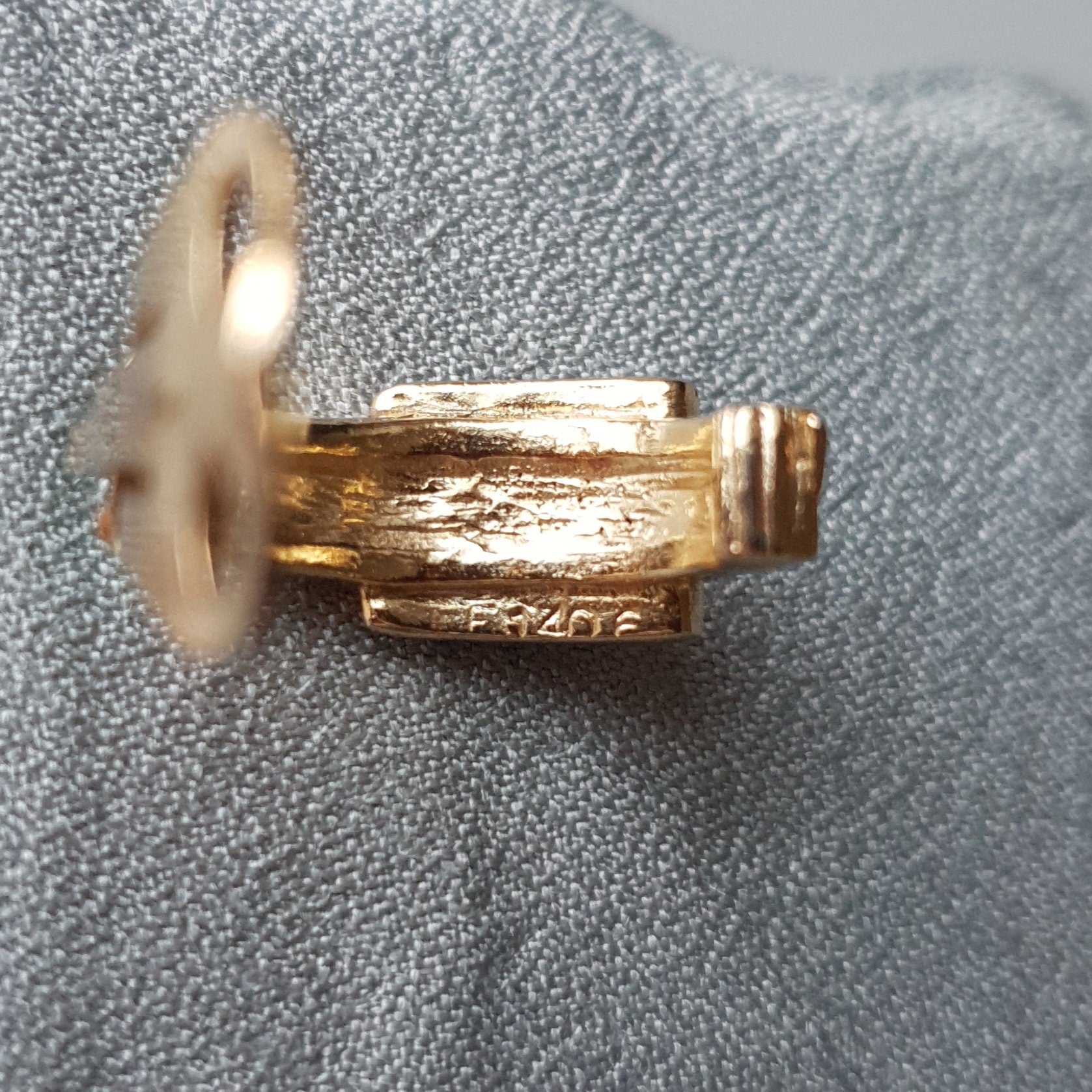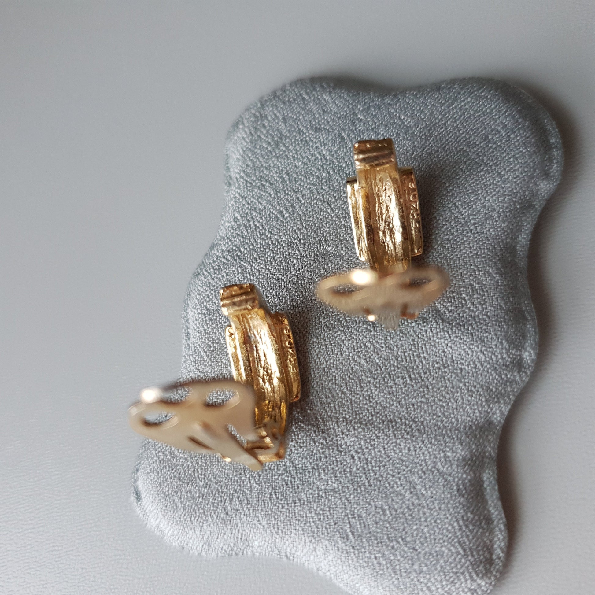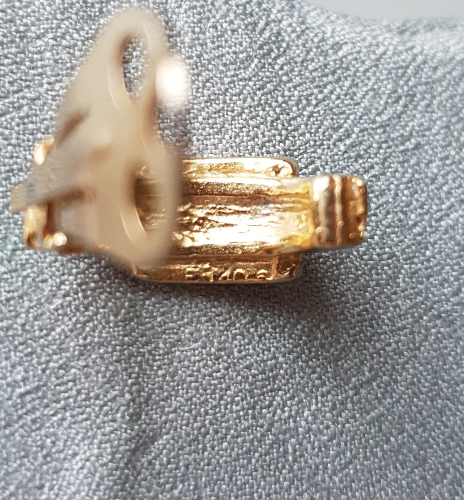 A very fun pair of small belt design clip on earrings in green and blue enamel on gold plated metal by Sphinx of London