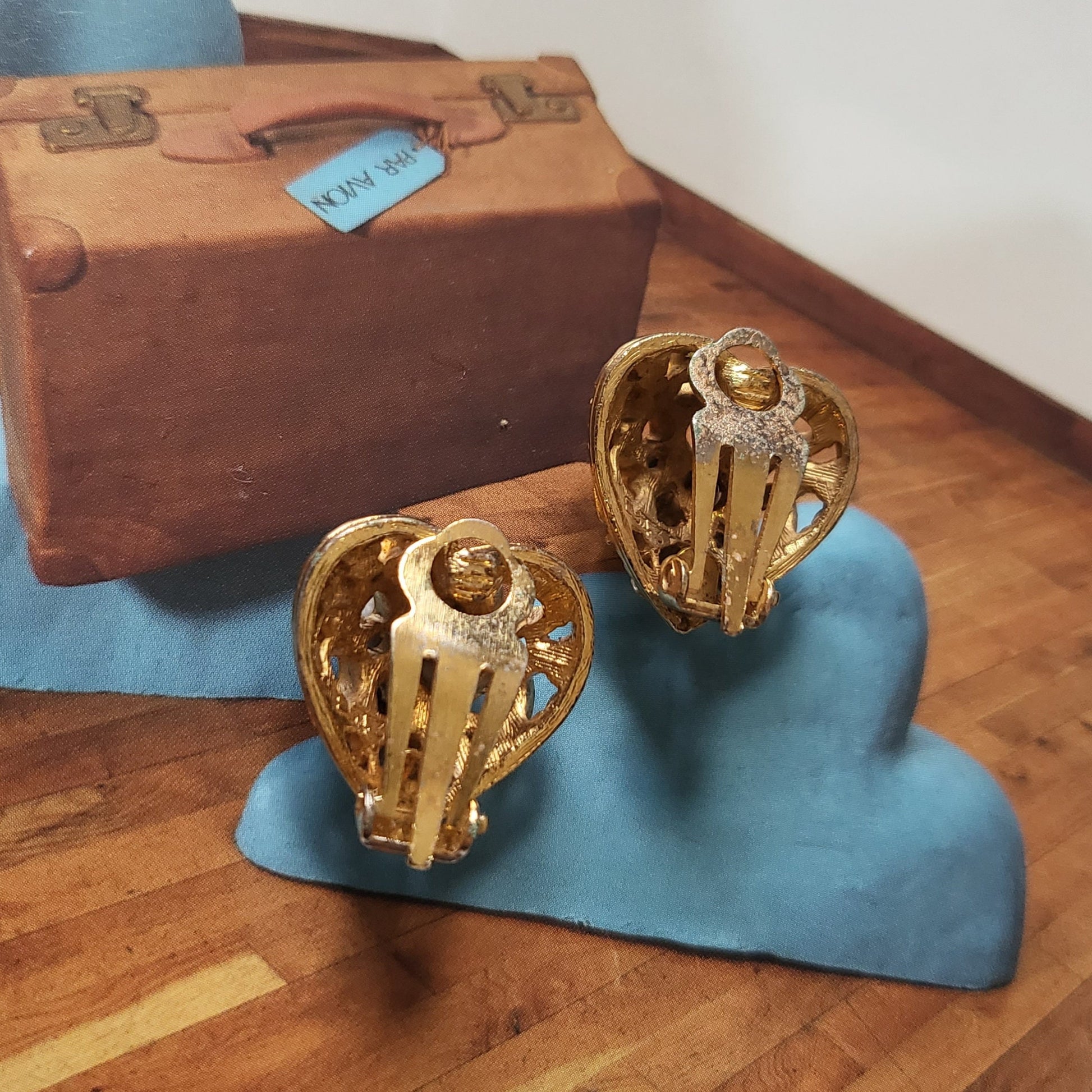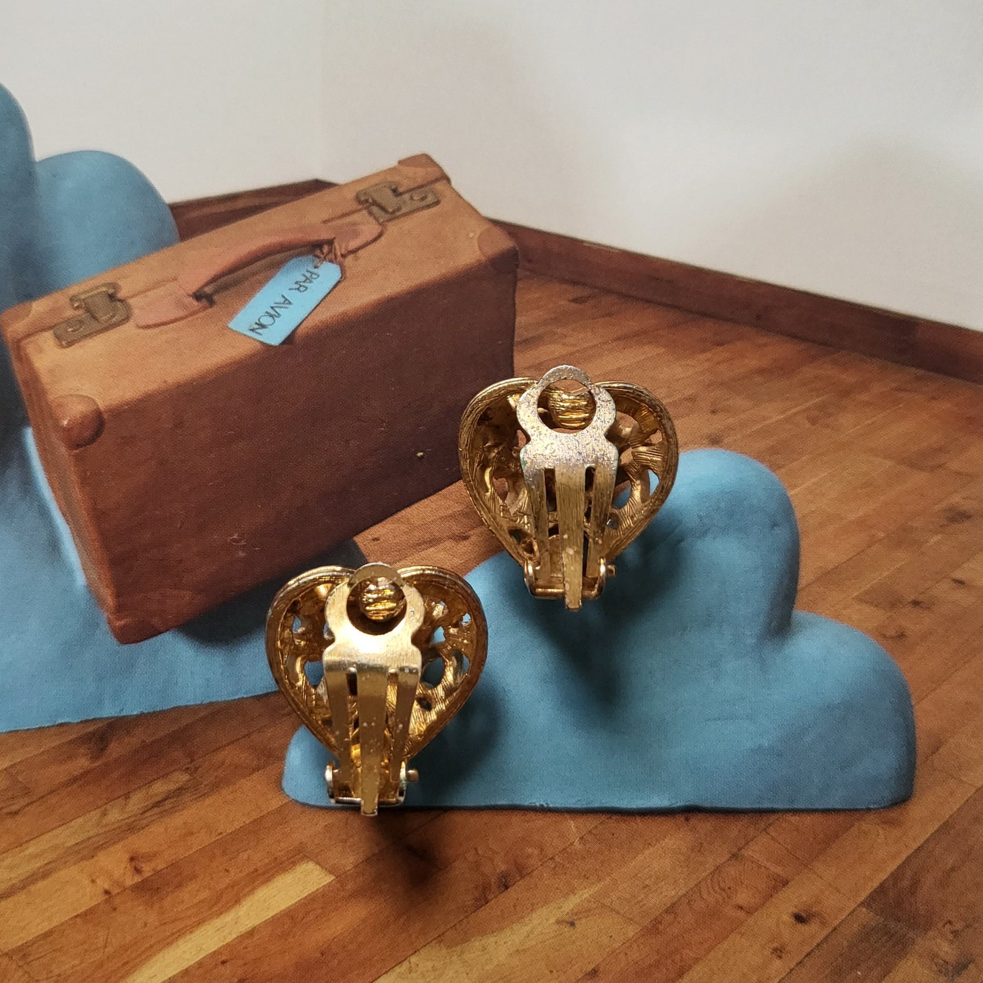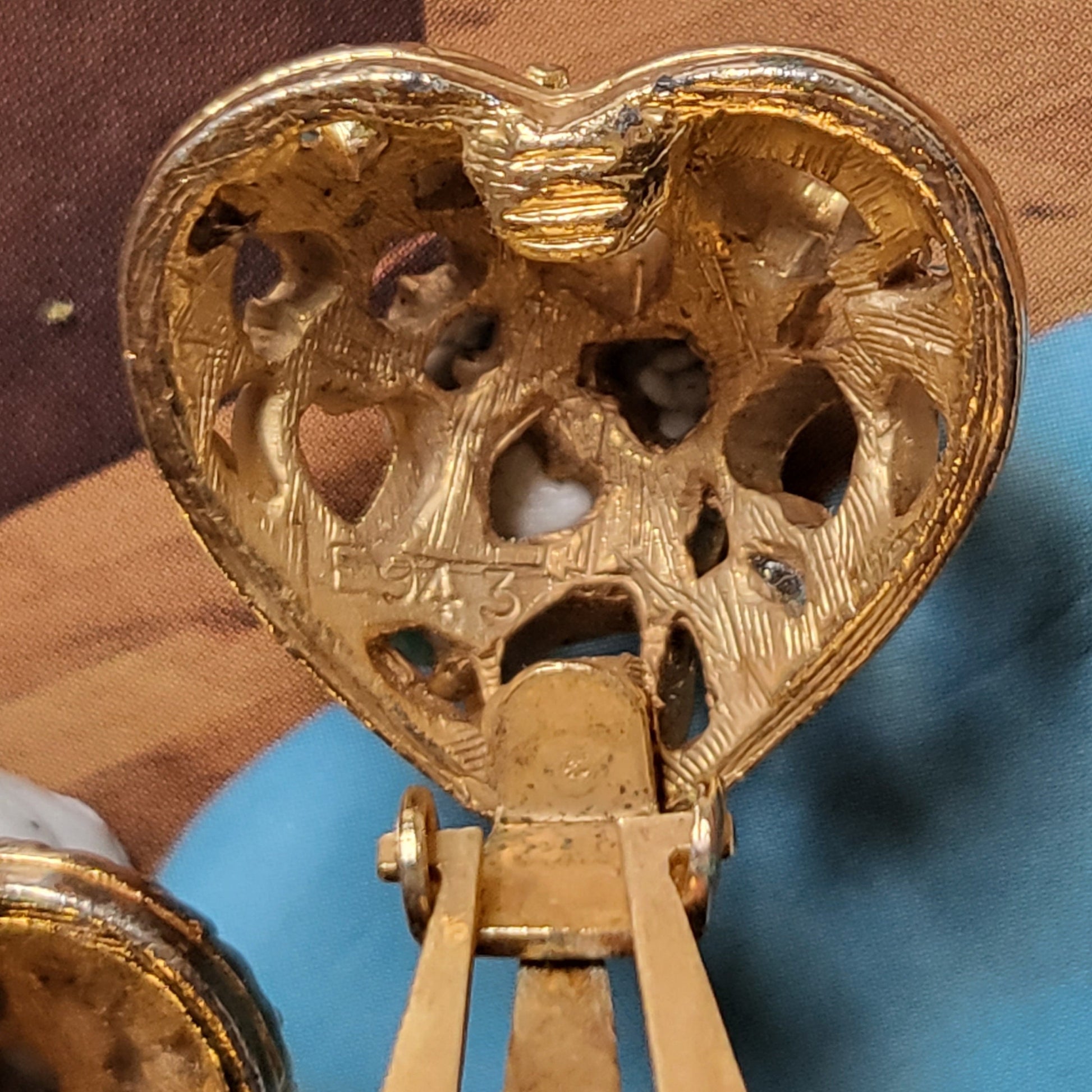 A very sweet pair of heart clip on earrings by Sphinx with a cluster of hearts and small turquoise beads on gold plated metal