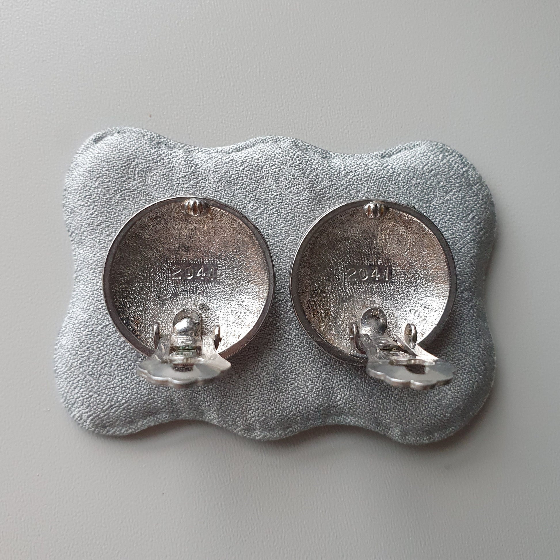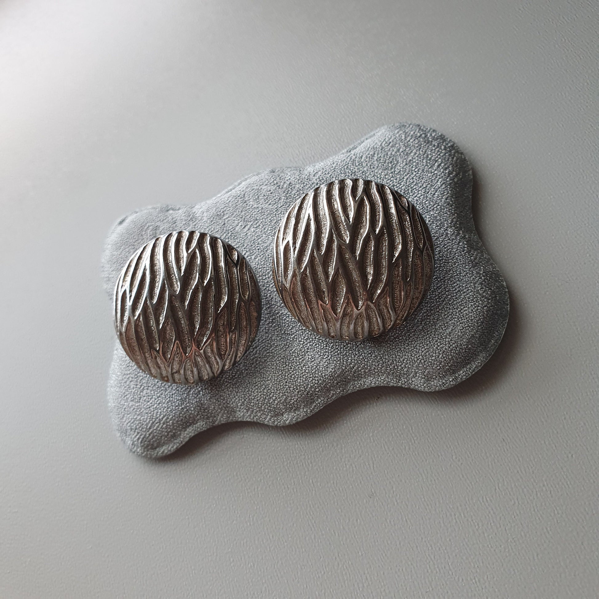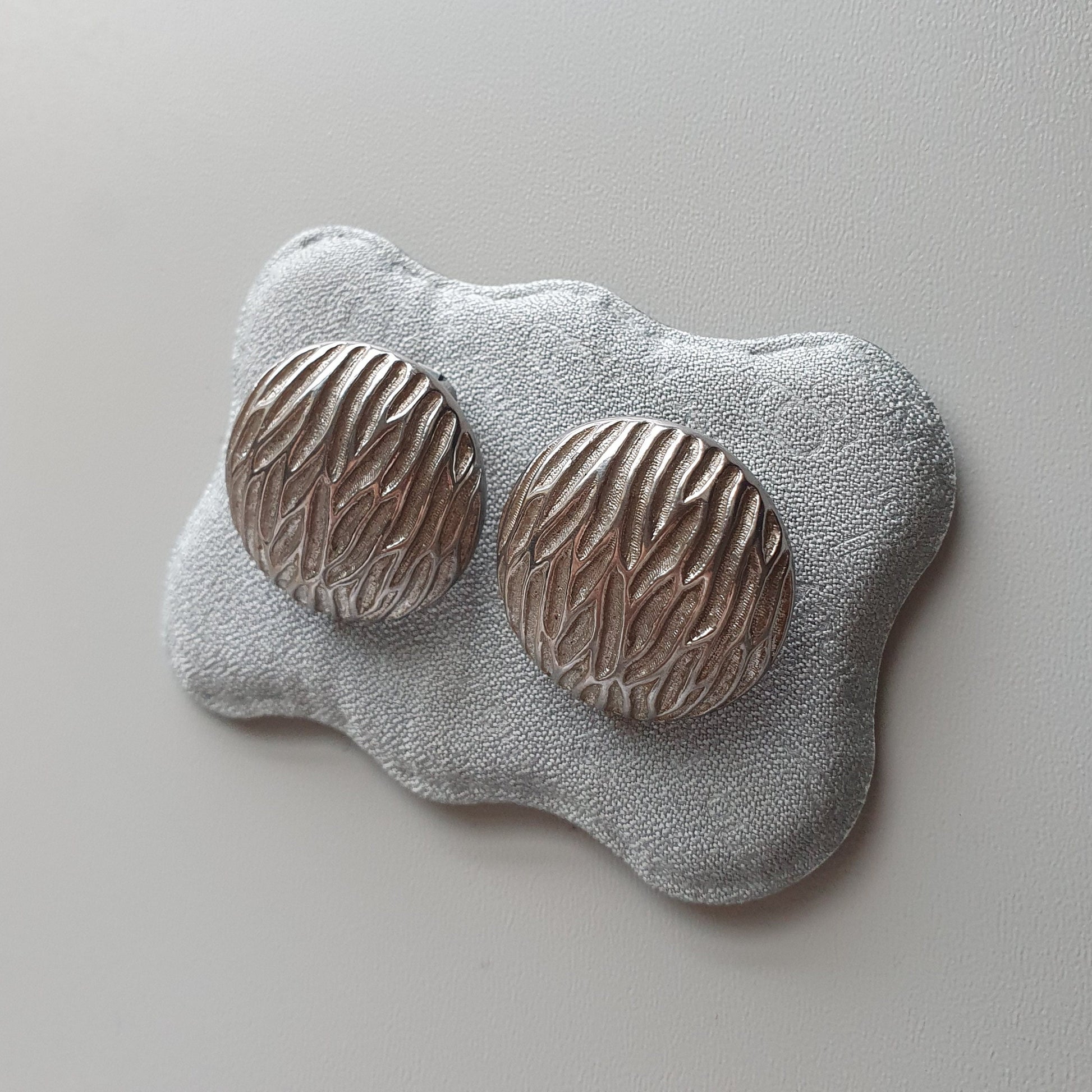 A fun pair of etched textured clip on earrings by Sphinx of London in rhodium plated metal
