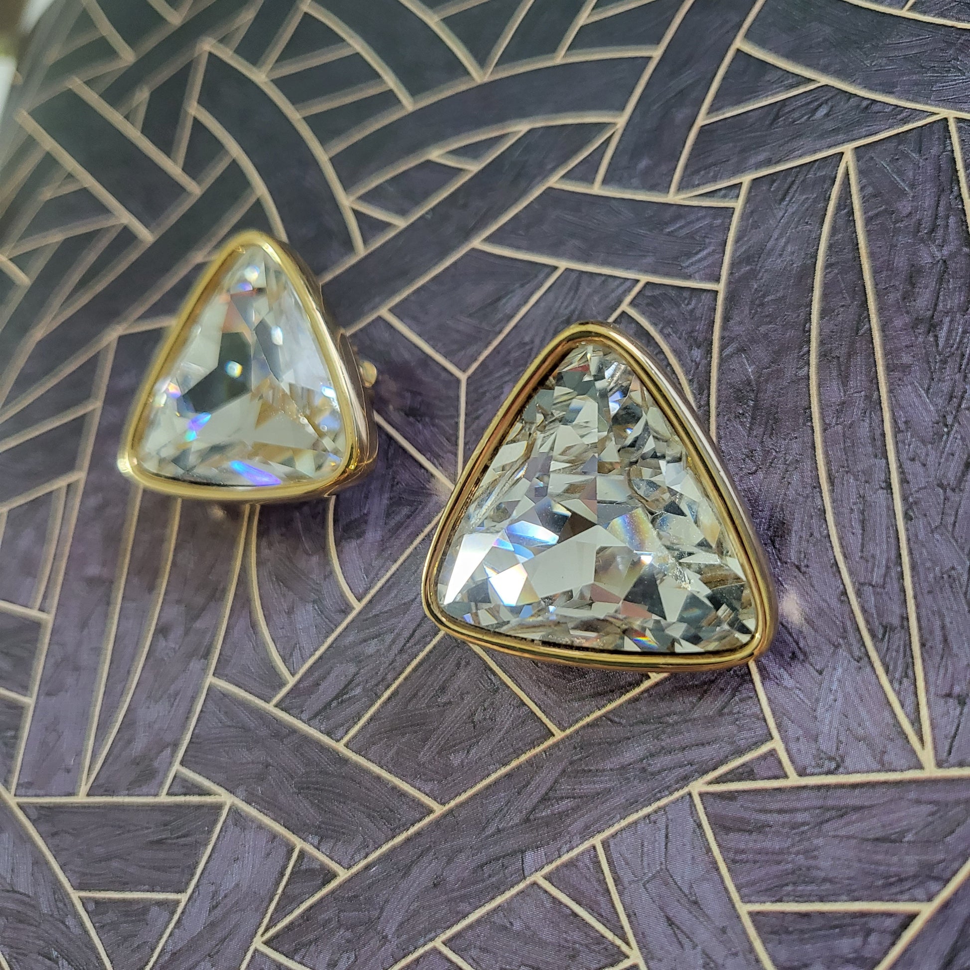 Clip on - Vintage Swarovski Triangular Crystal Clip On Earrings