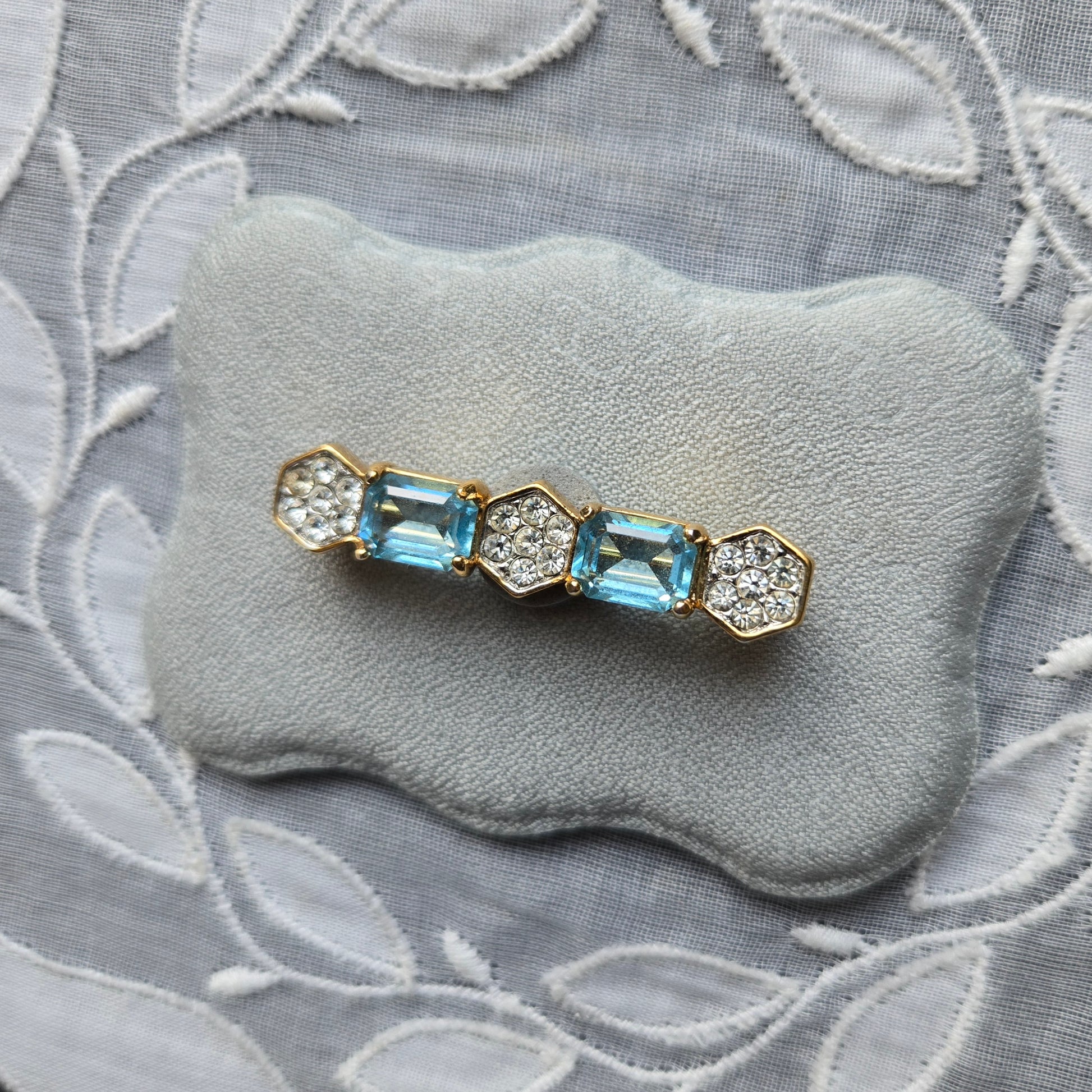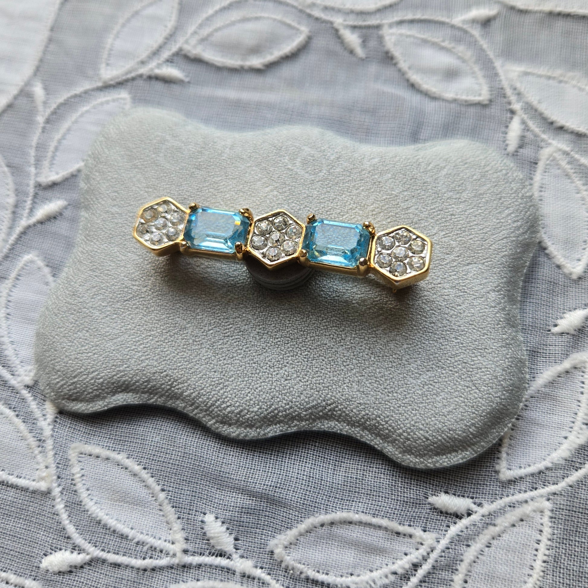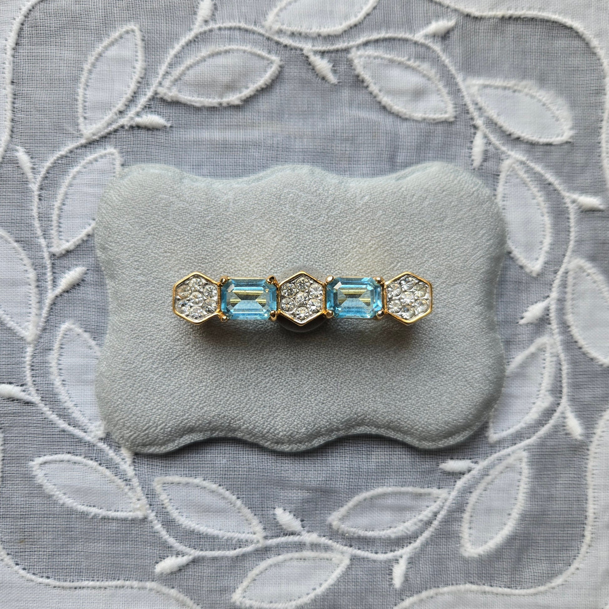 Brooch - Attwood and Sawyer Blue and Clear Crystals Bar Brooch