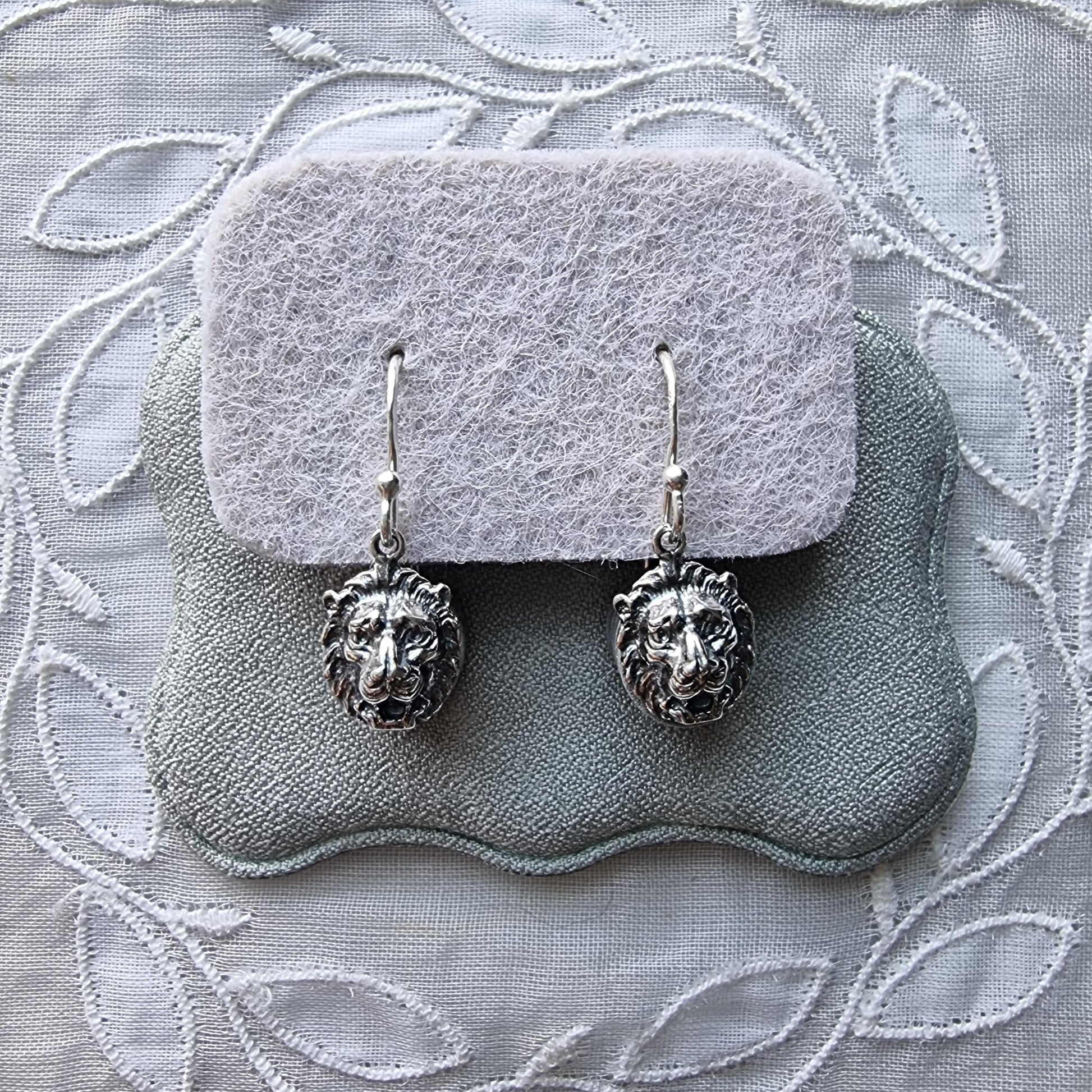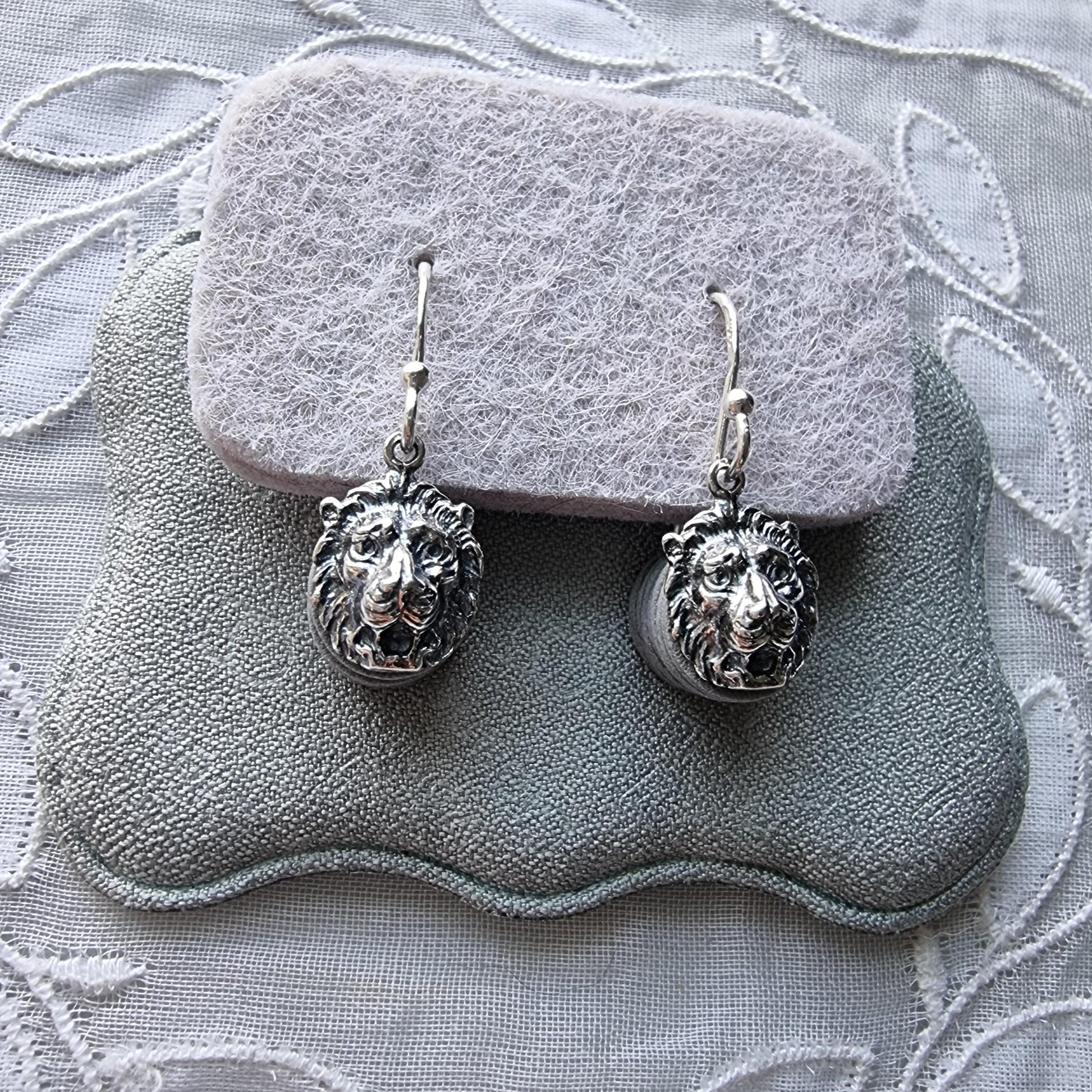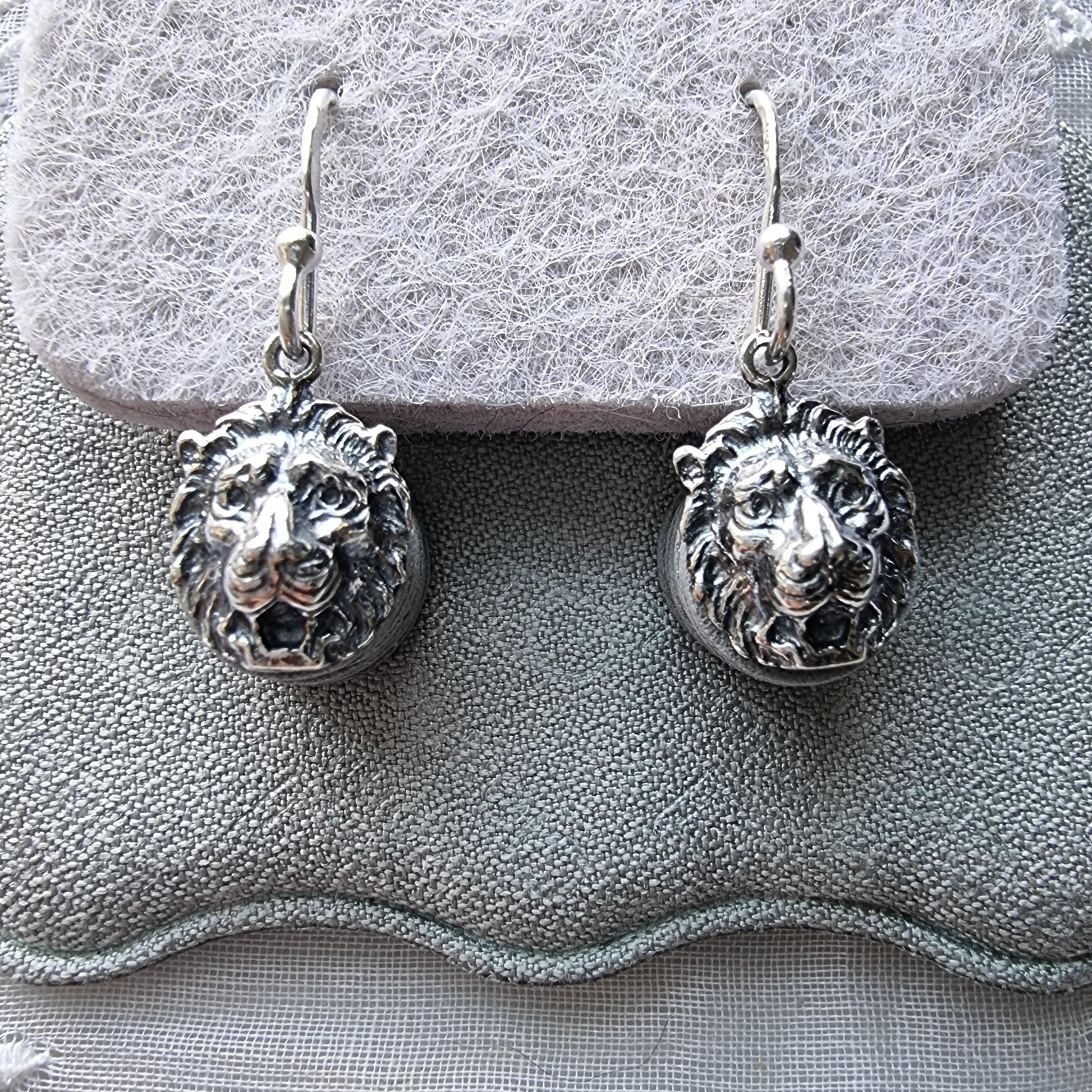 Hooks - Sterling Silver Lion Head Drops Hook Earrings
