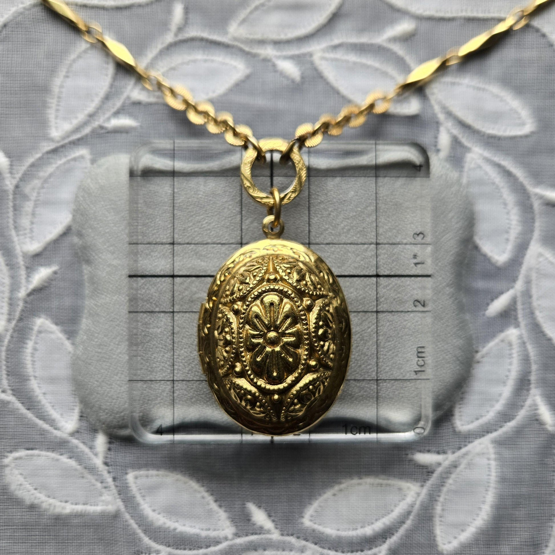 Necklace - 1928 Gold Oval Locket Pendant Necklace