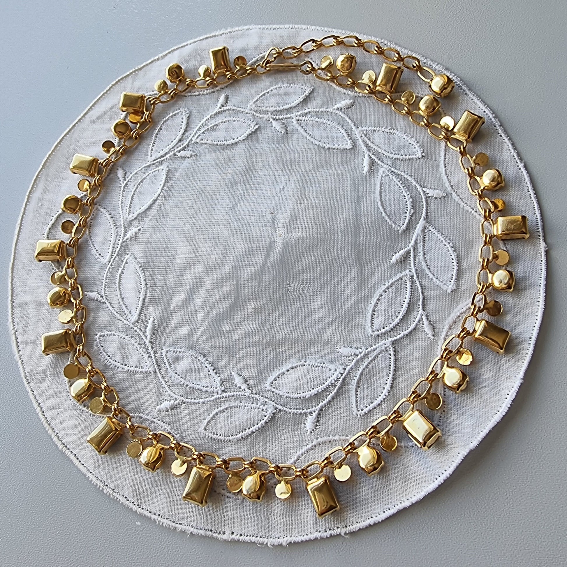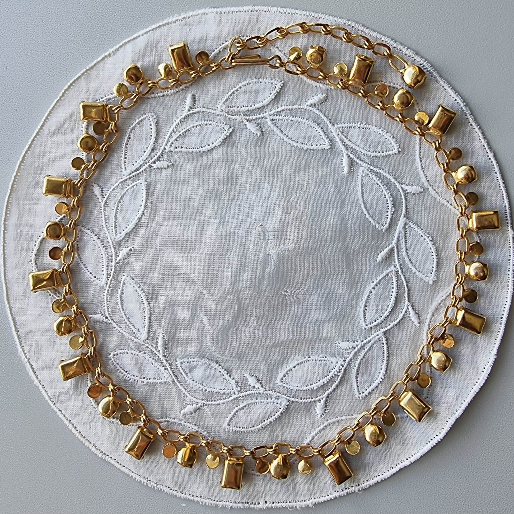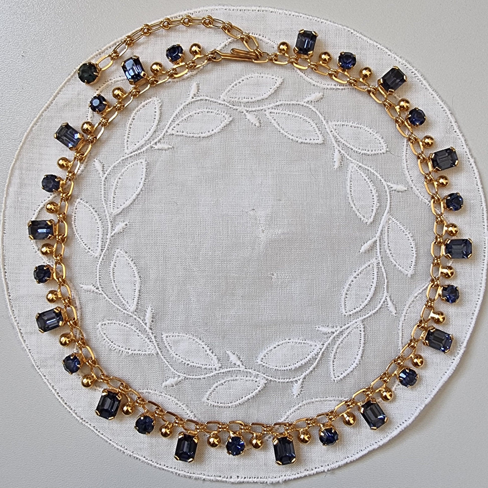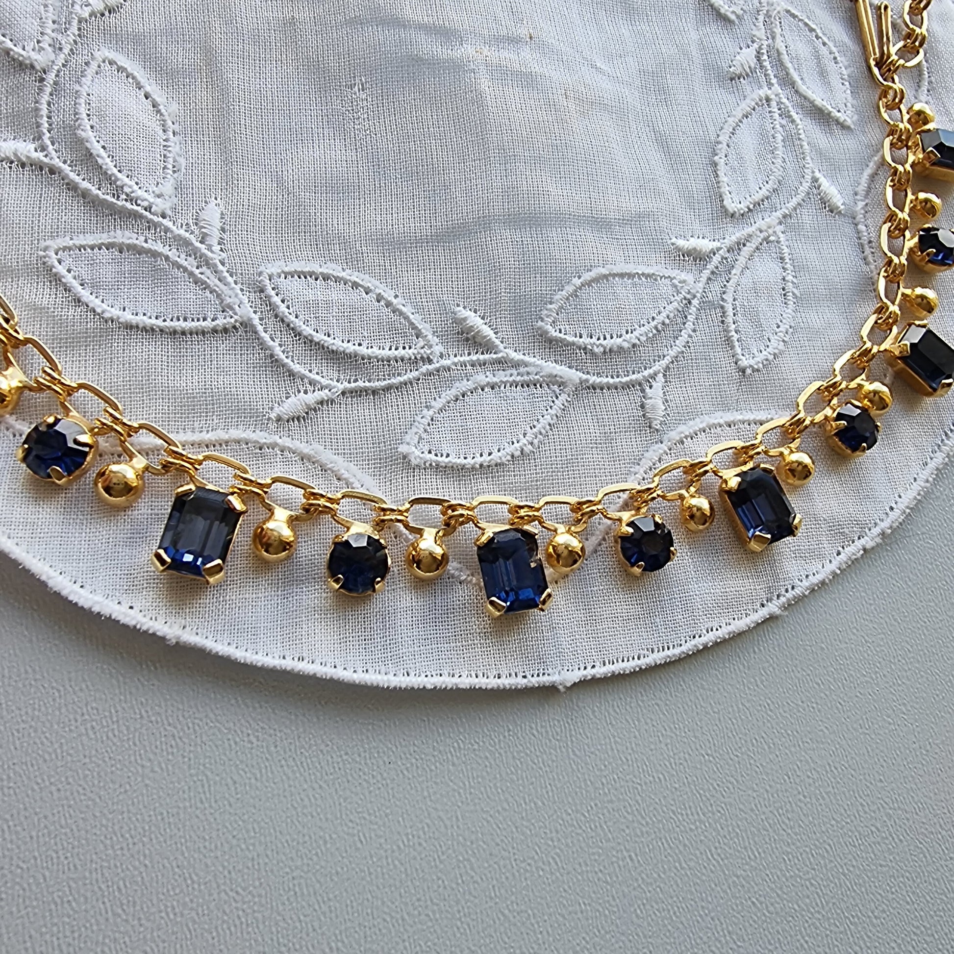 A beautiful crystal necklace with blue crystals on gold plated metal