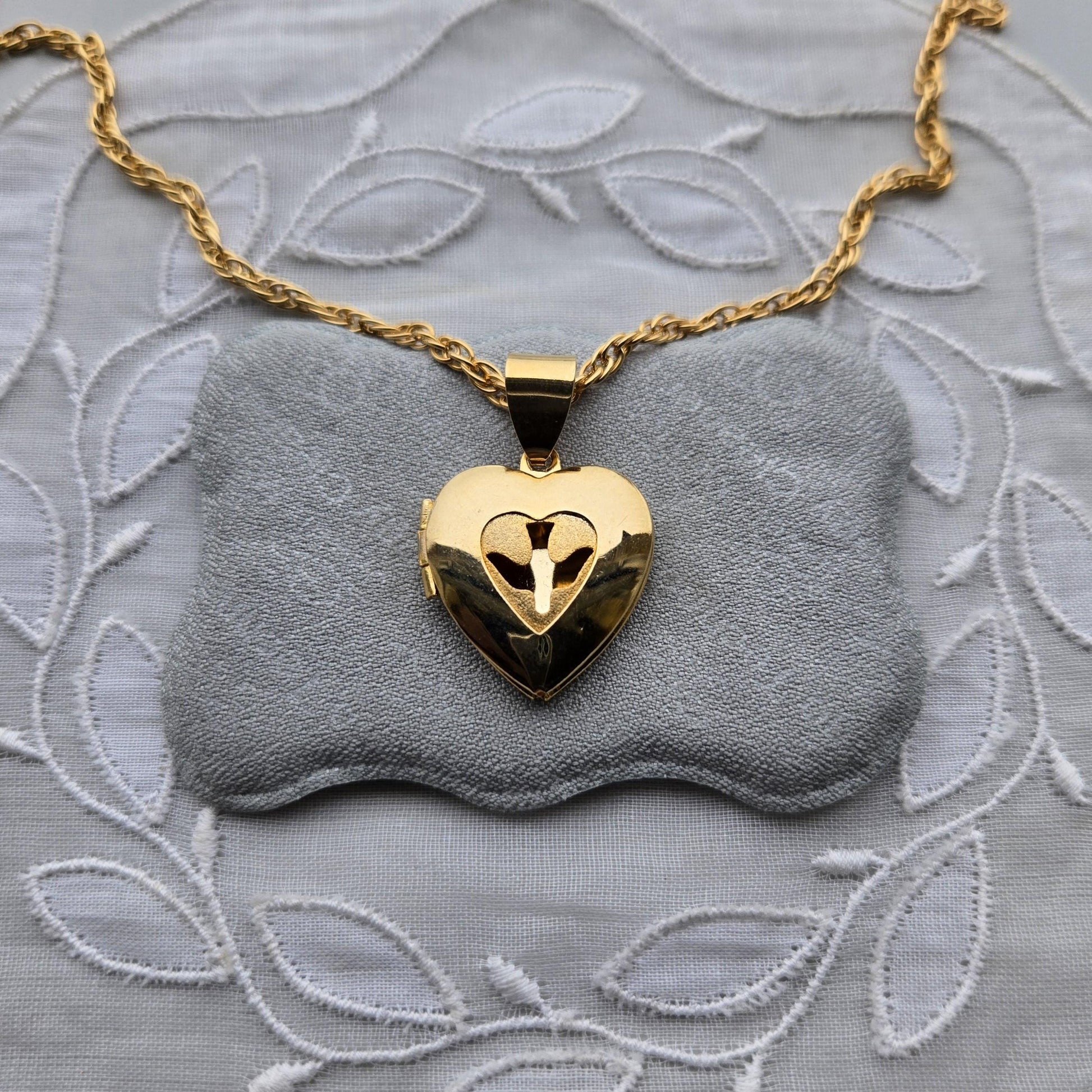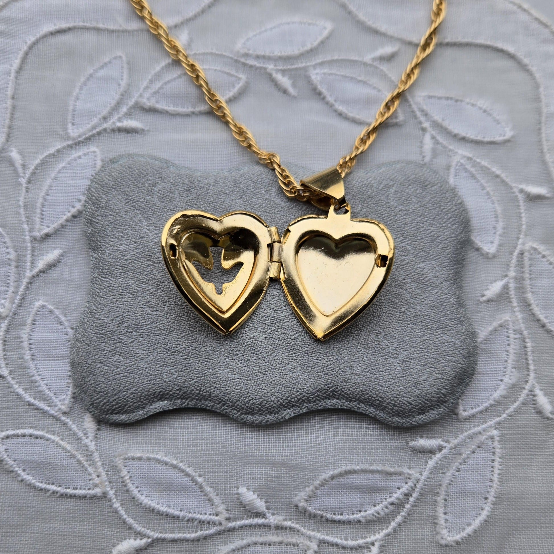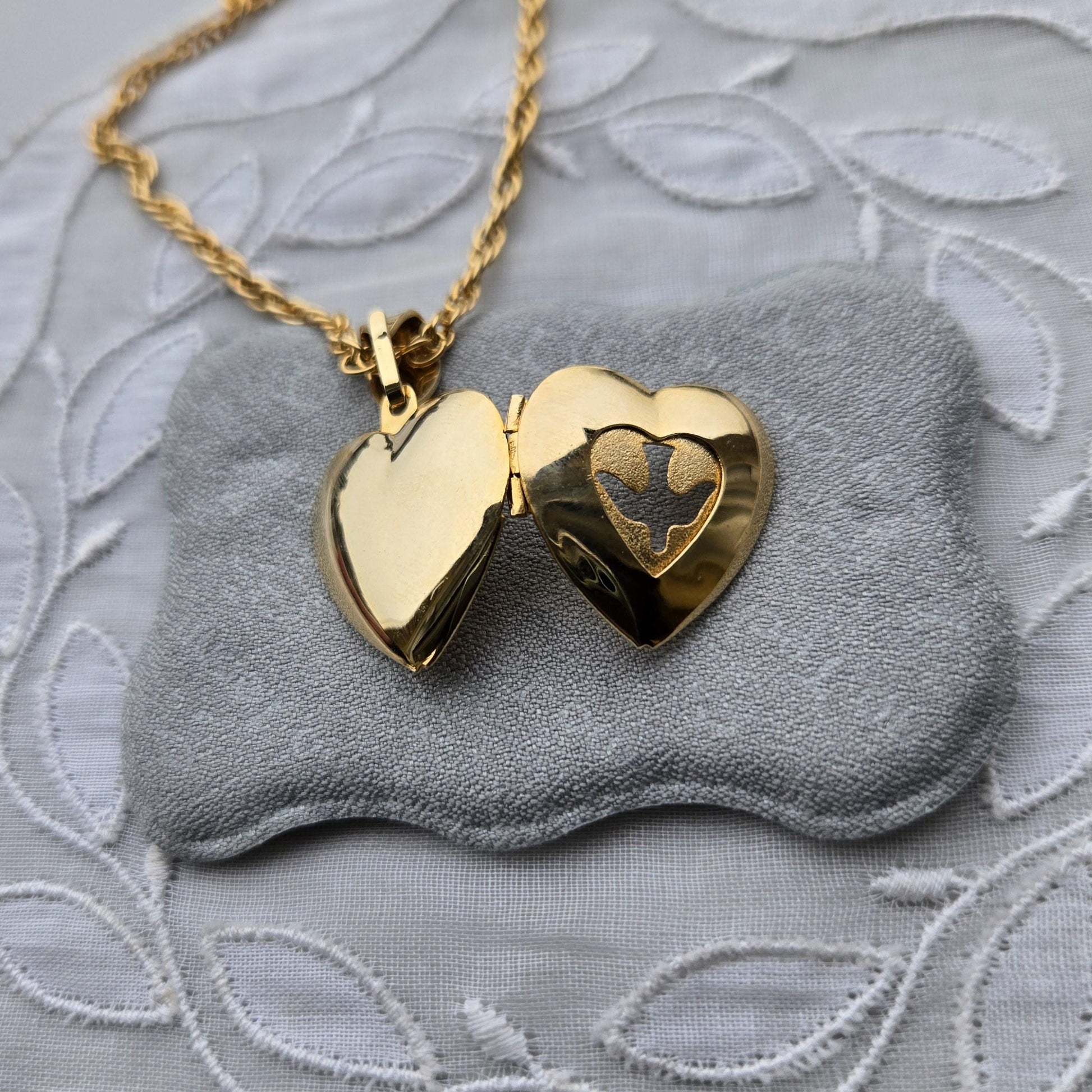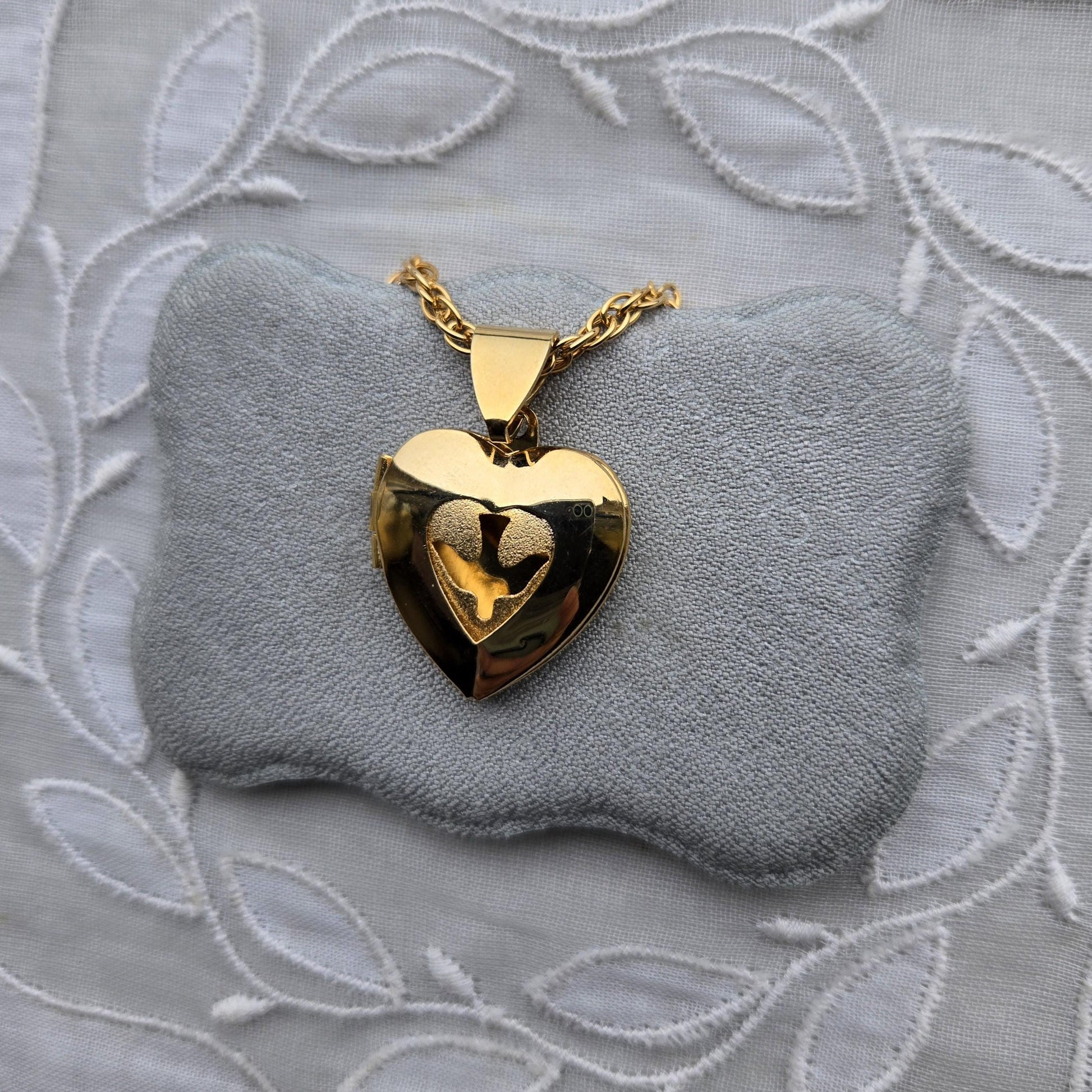 A lovely heart locket with a swallow/dove cutout in gold plated metal