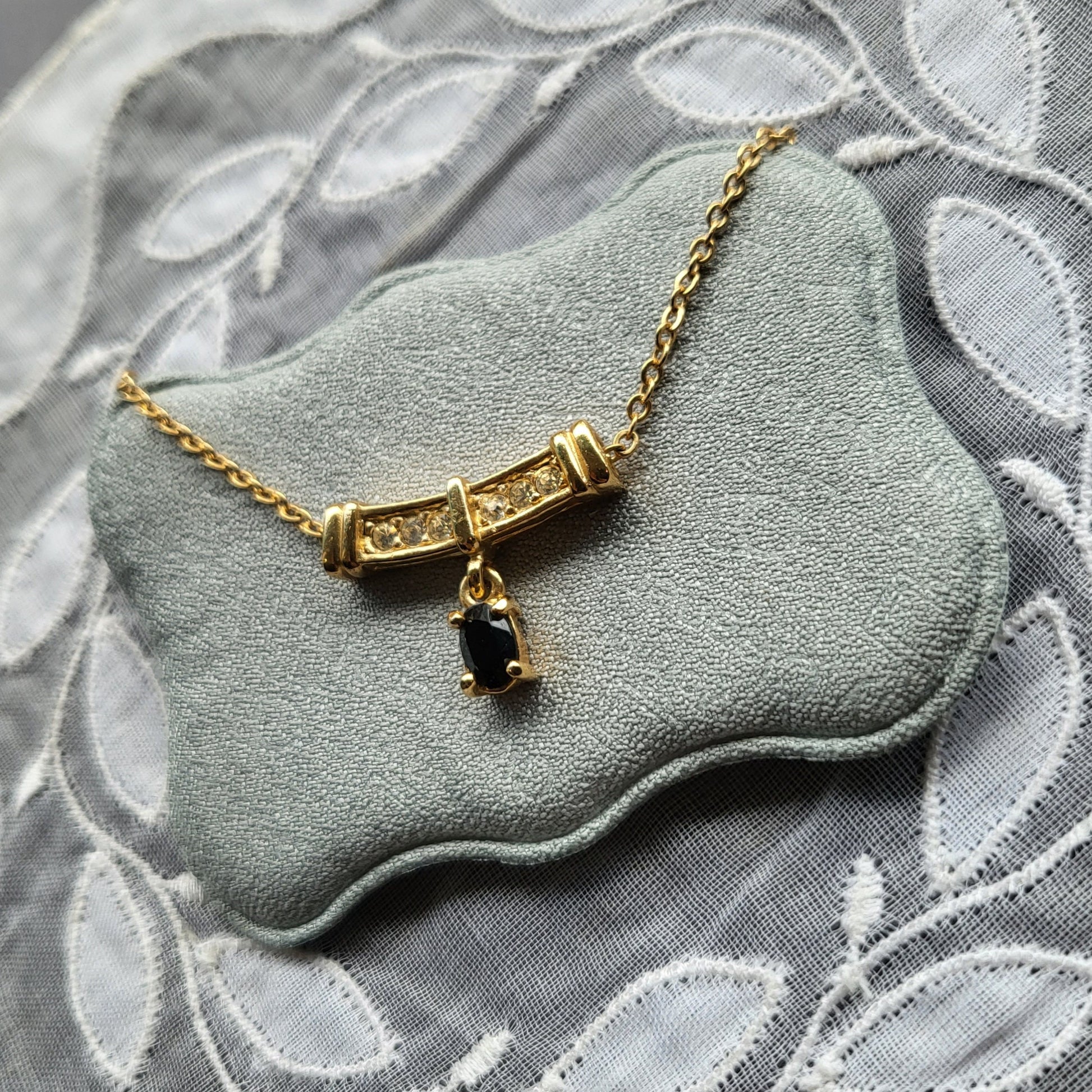 Necklace - Roman Black Crystal Drop Pendant Necklace