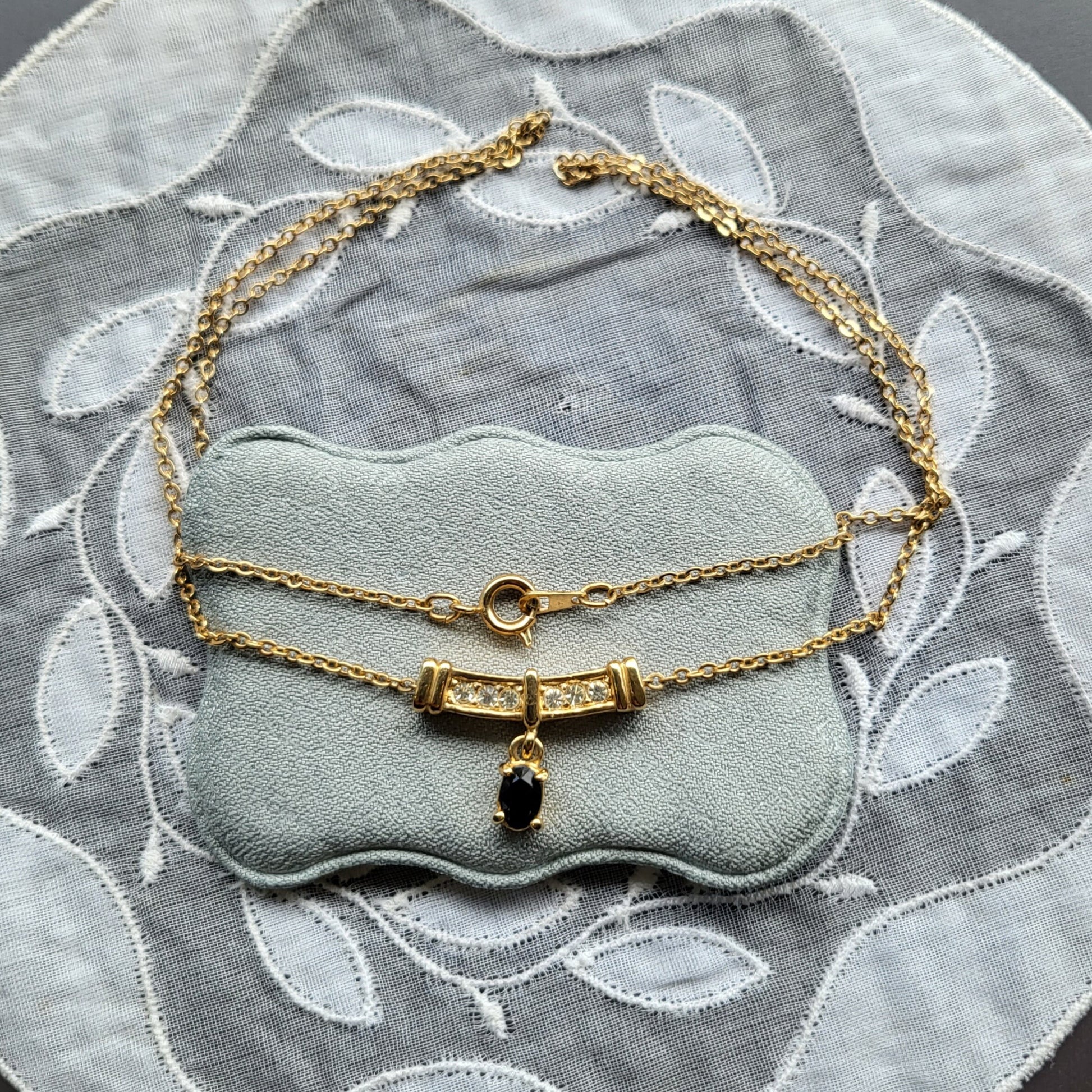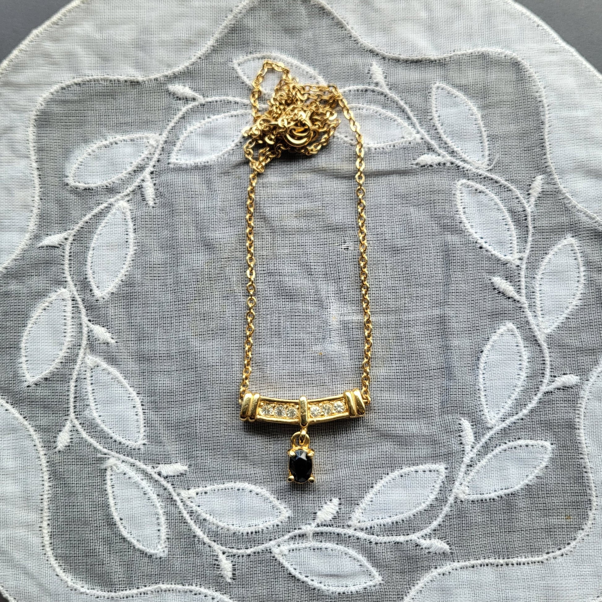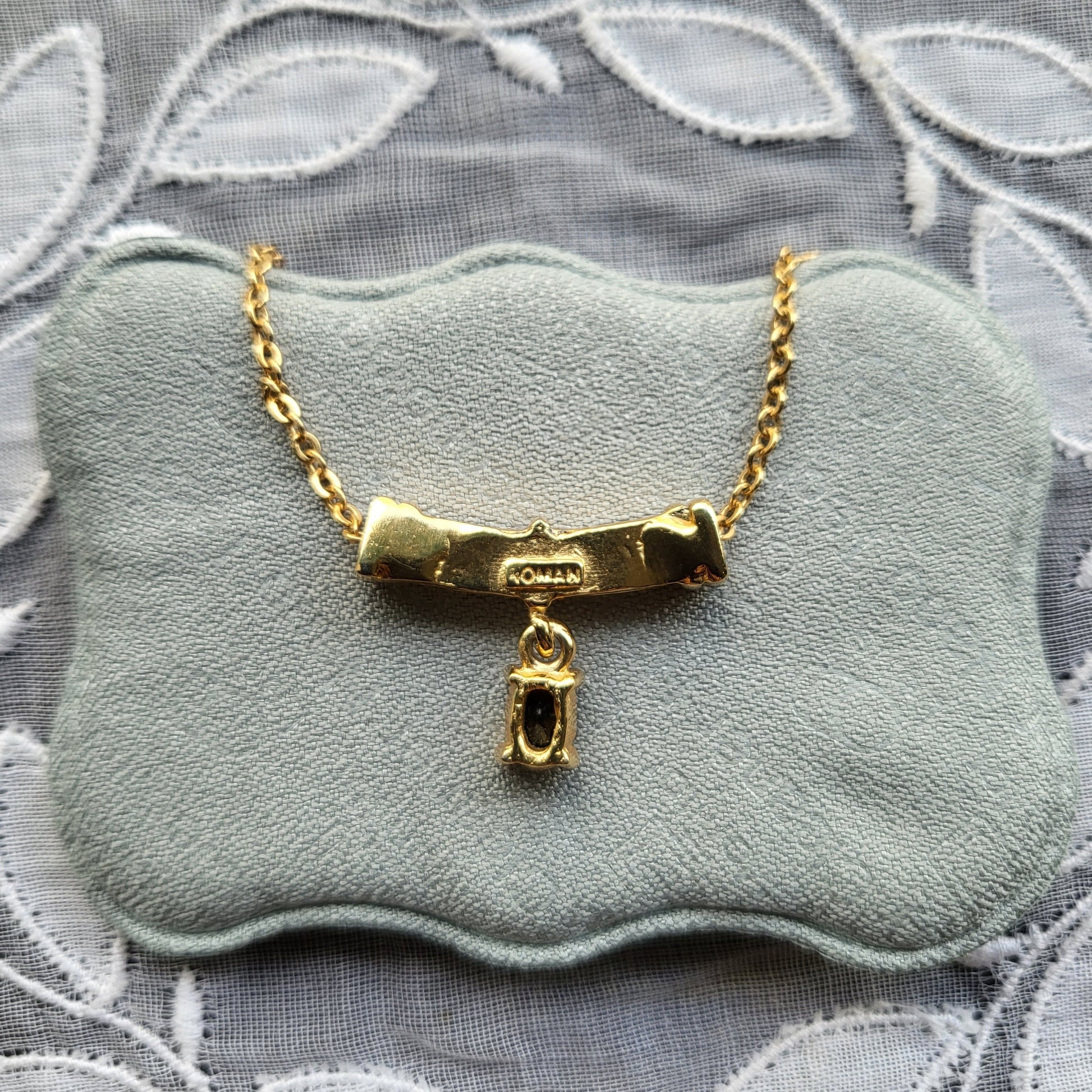 An elegant drop pendant necklace by Roman with black and clear crystals set on gold plated metal