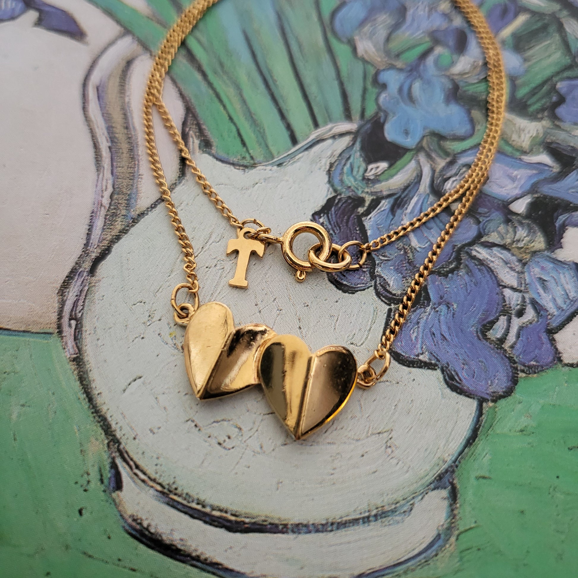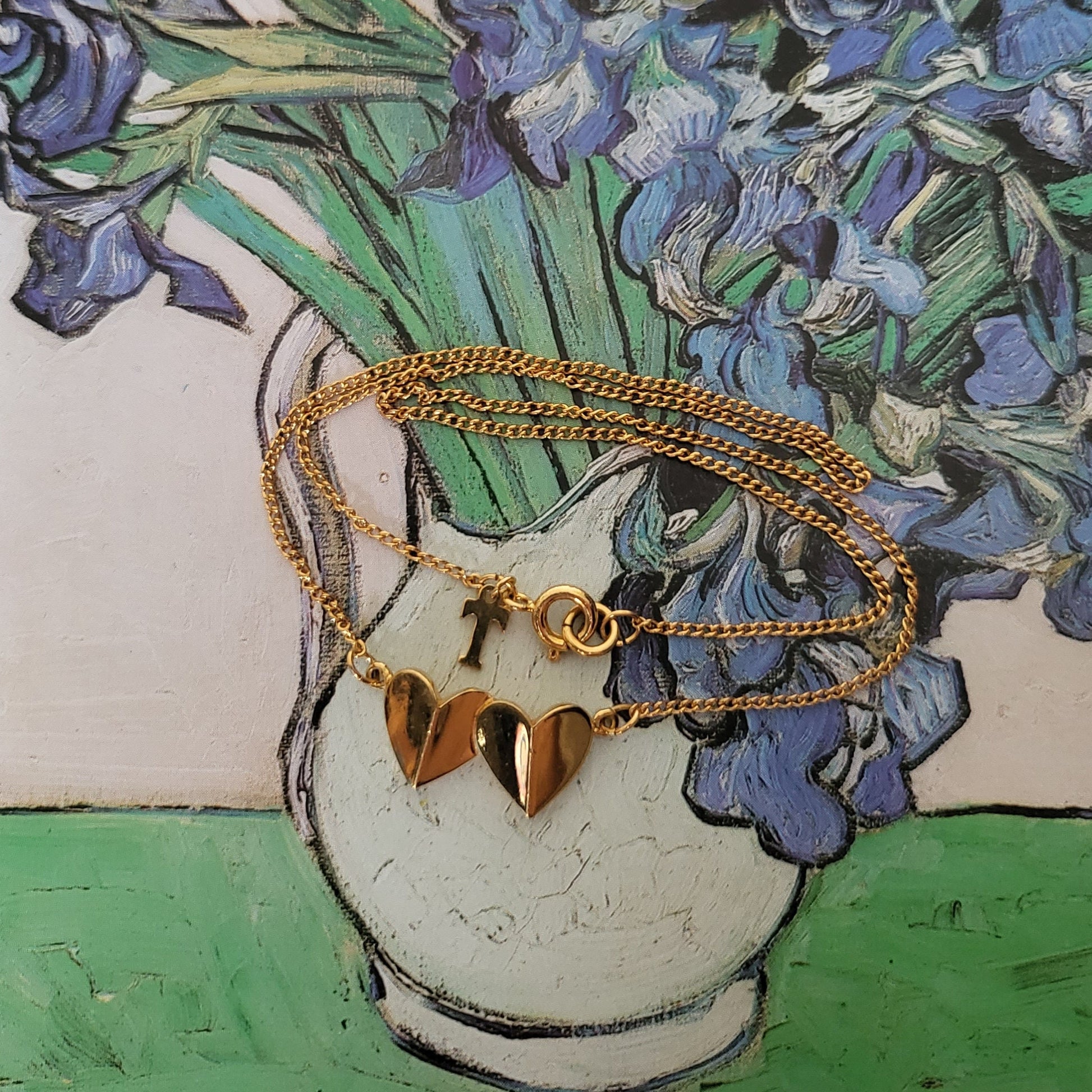 A very sweet double hearts necklace by Trifari in gold plated metal