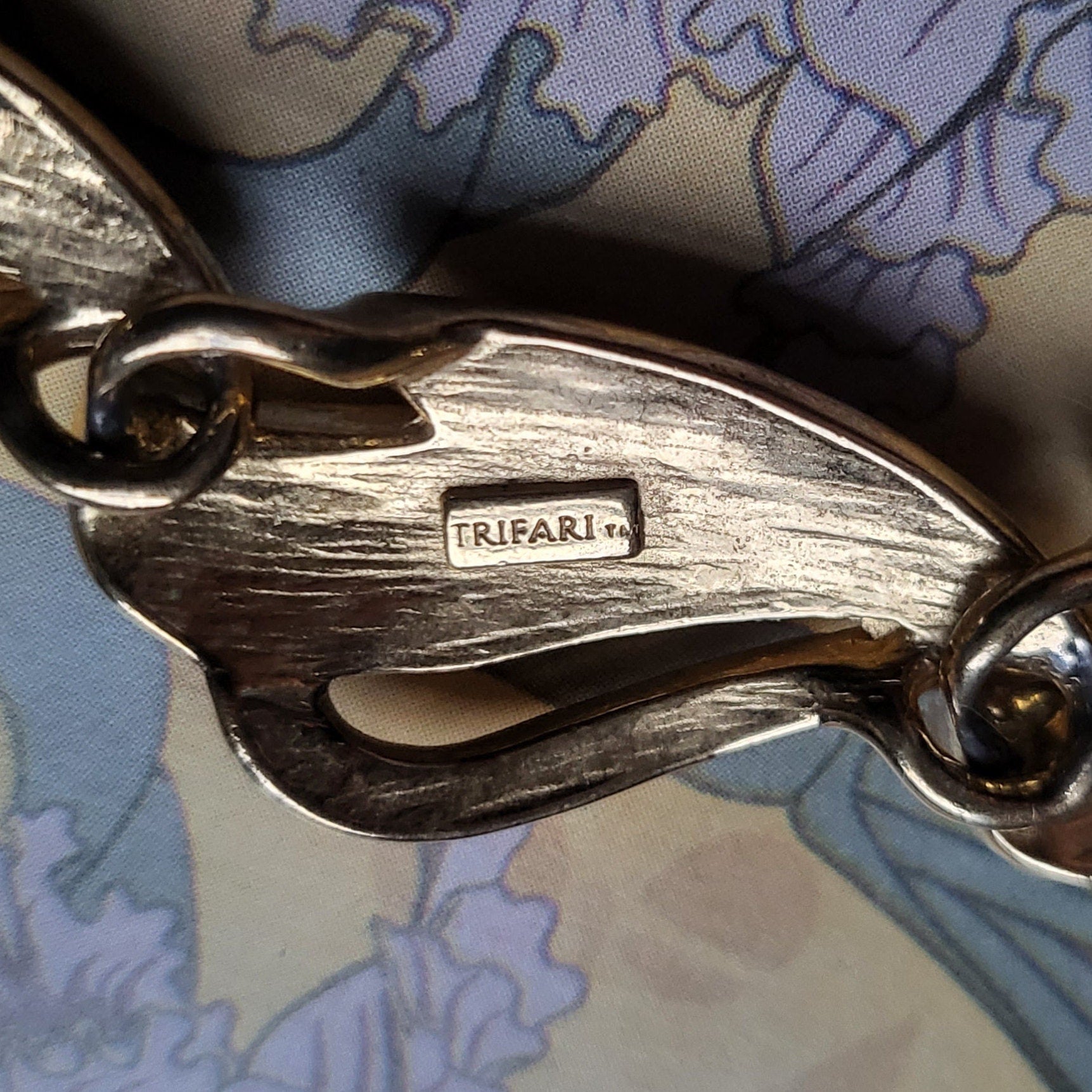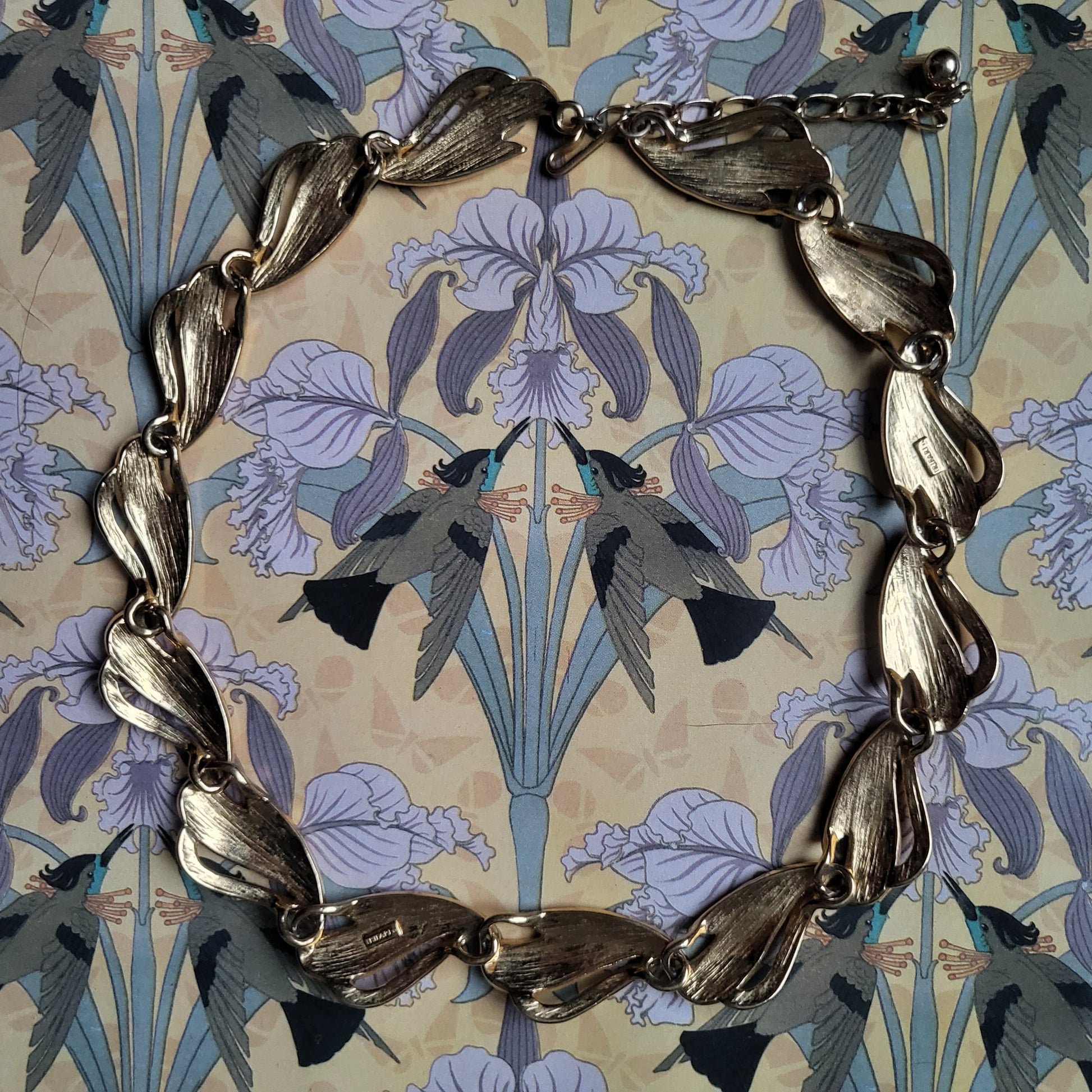 Necklace - Trifari Green Enamel Abstract Leaf Necklace