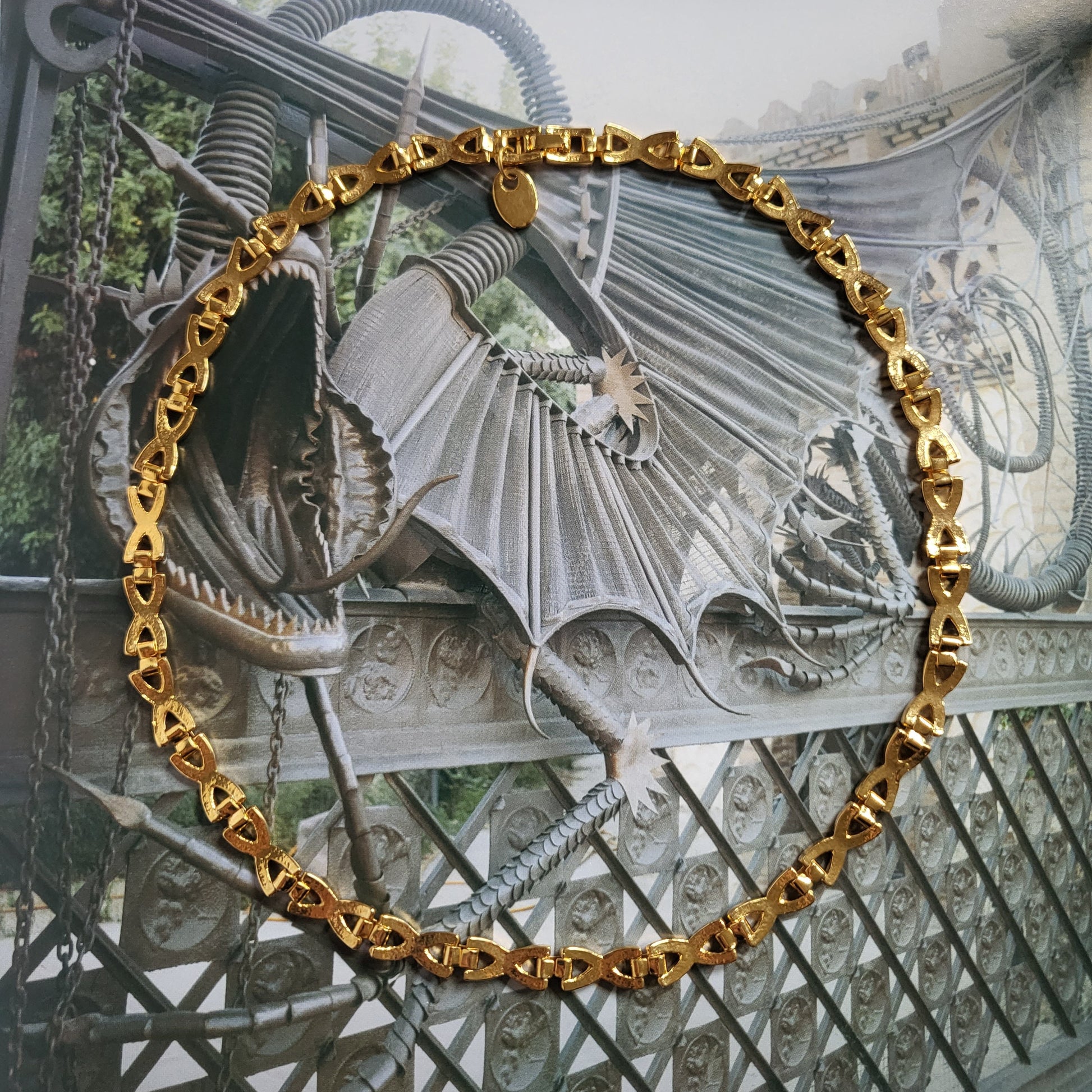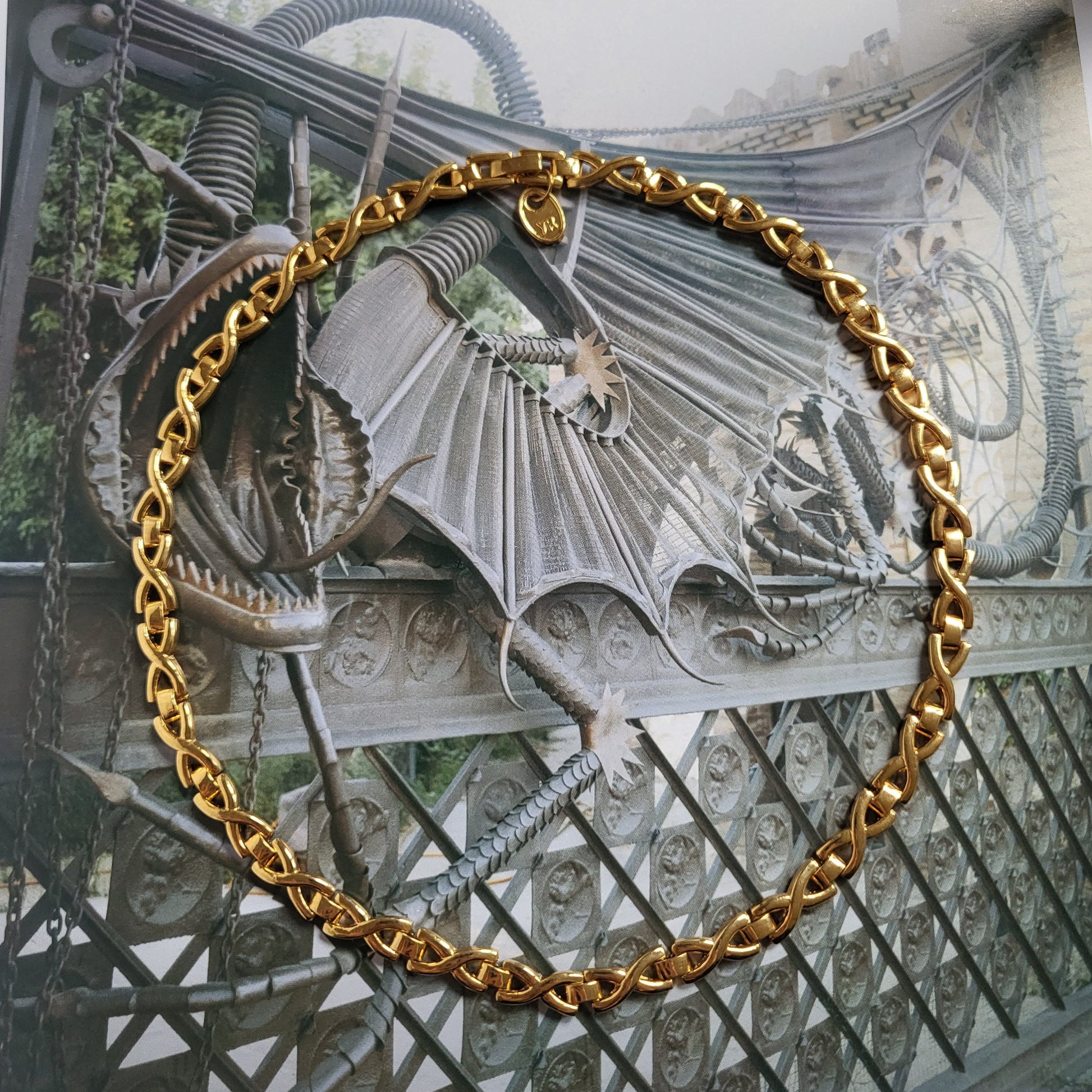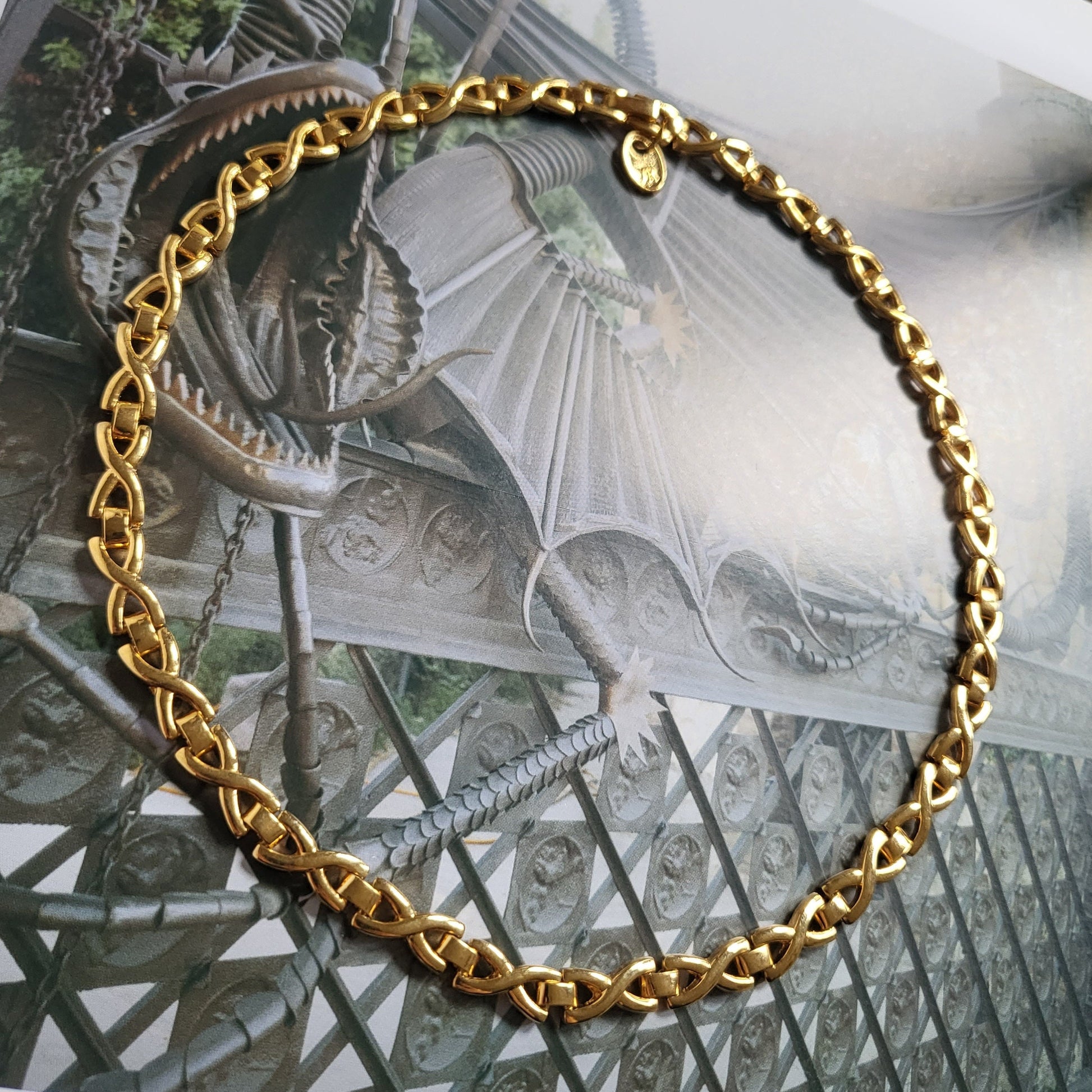 A nice plain gold chain necklace by Yves Rocher France with cross shaped chain links in gold plated metal