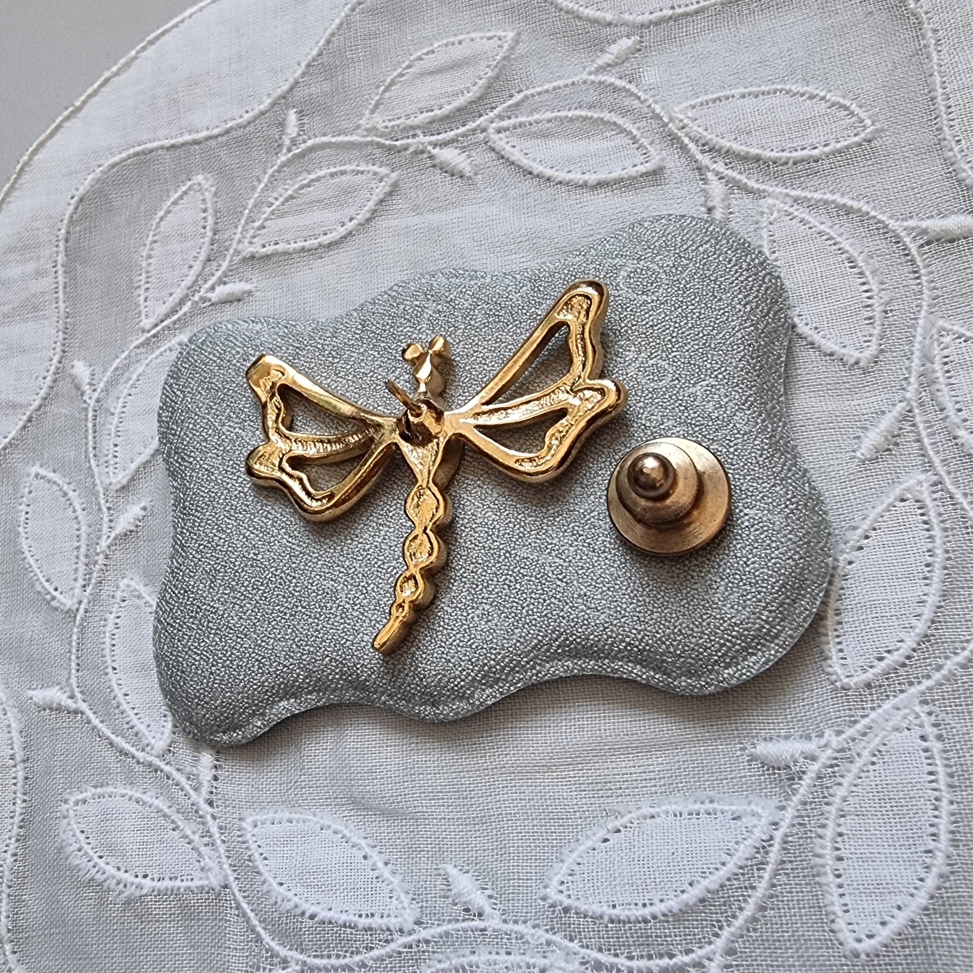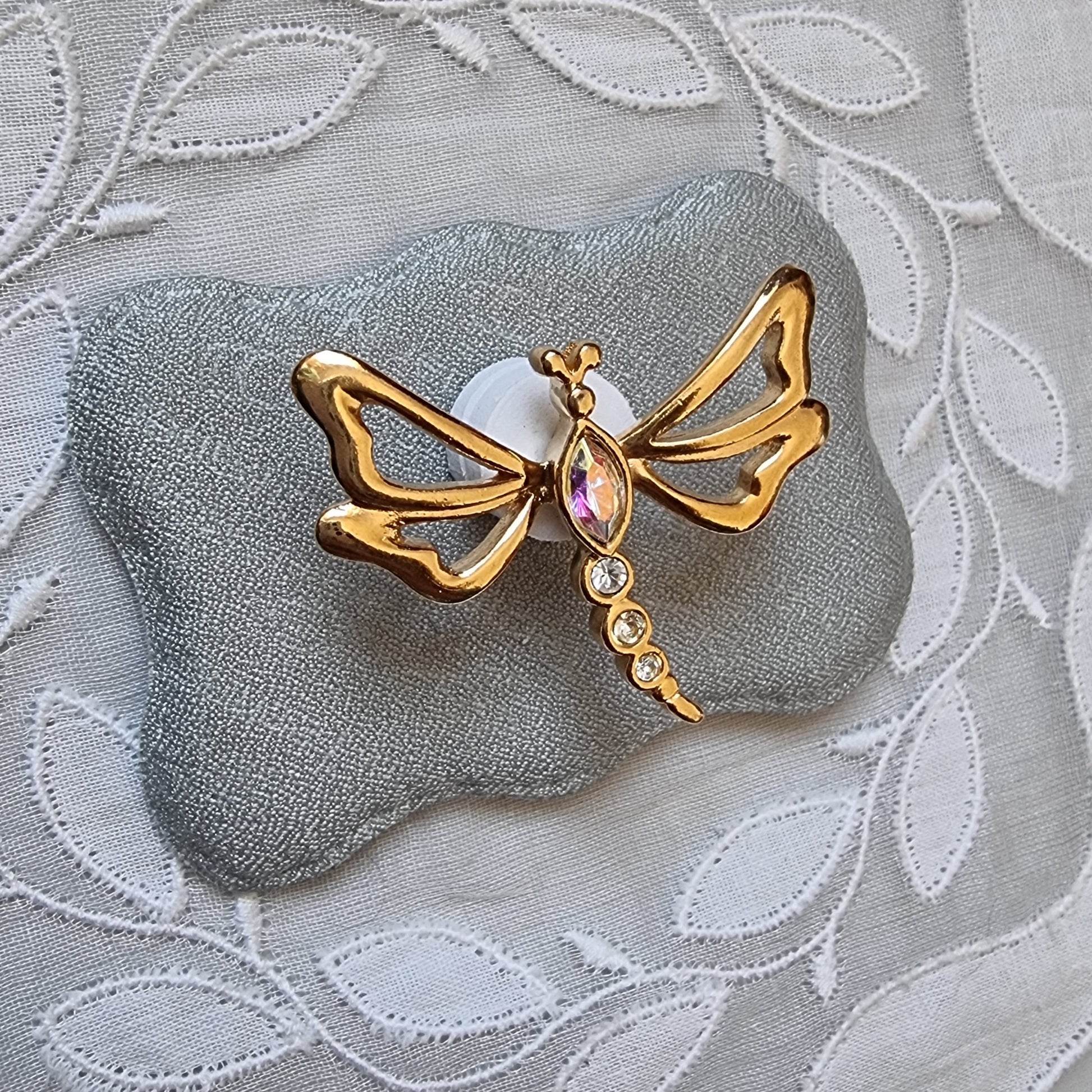 A gorgeous dragonfly pin brooch with aurora borealis and clear crystals on gold plated metal