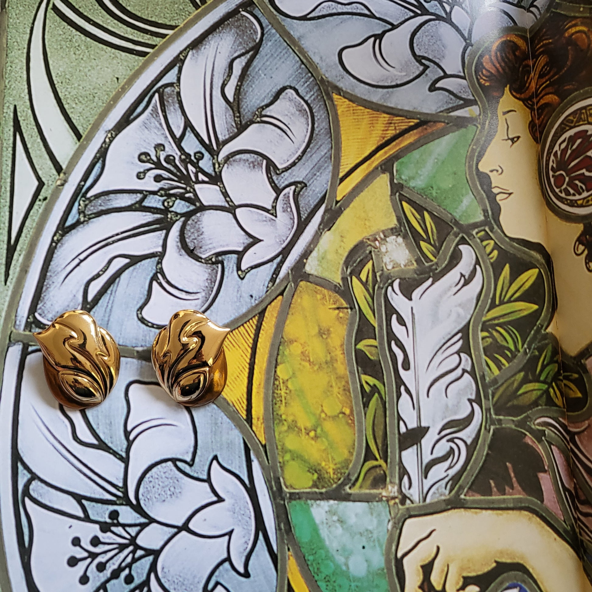 A fun pair of 80s stud earrings by Bergdorf Goodman in abstract design accented by brown orange enamel on gold plated metal