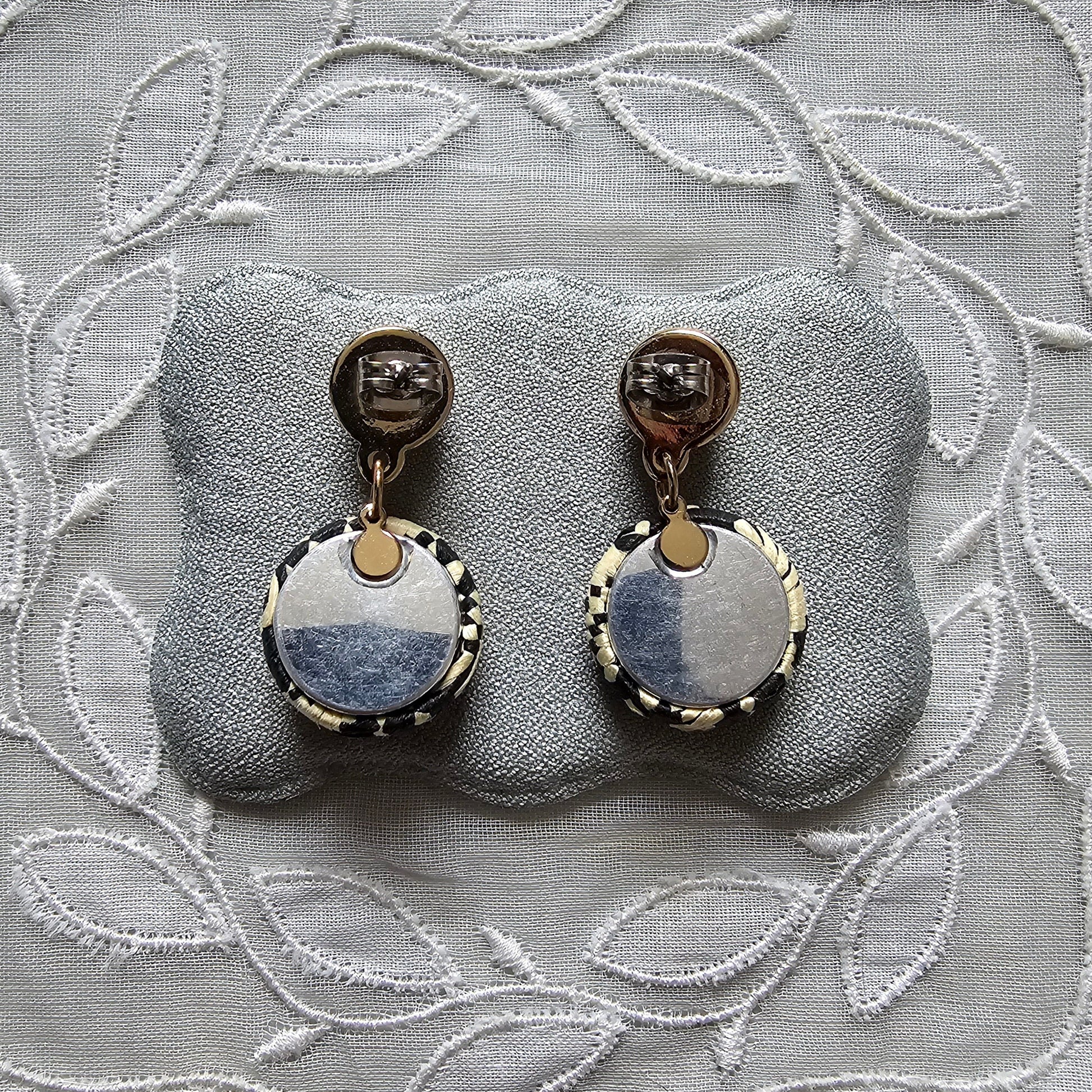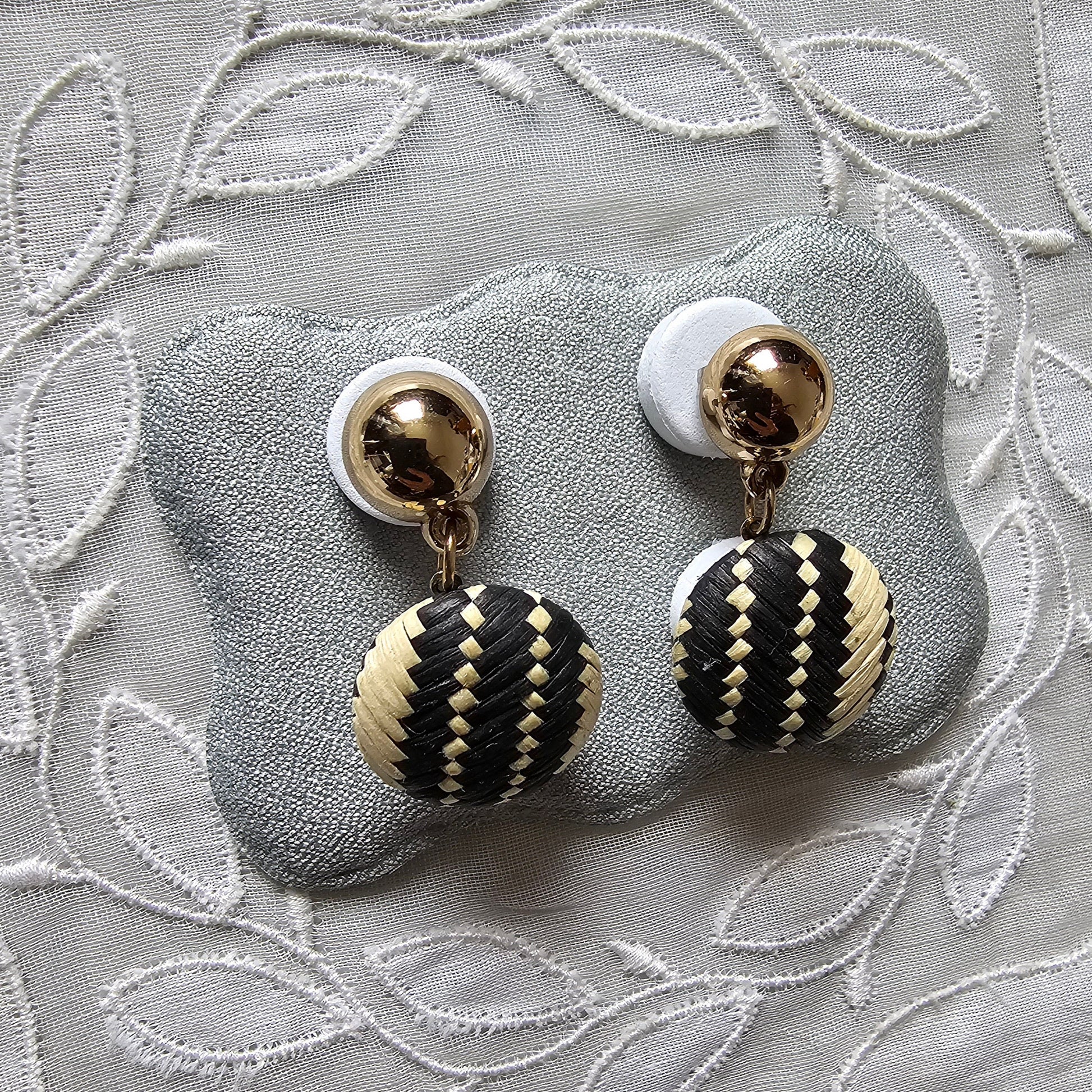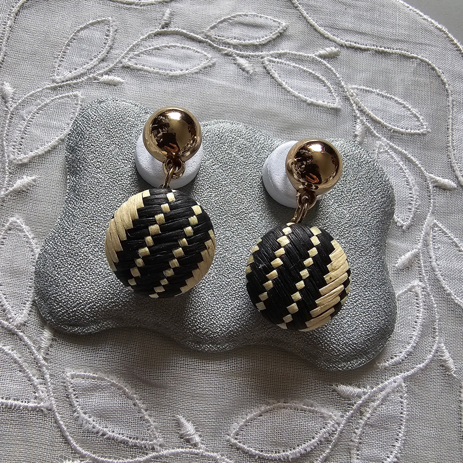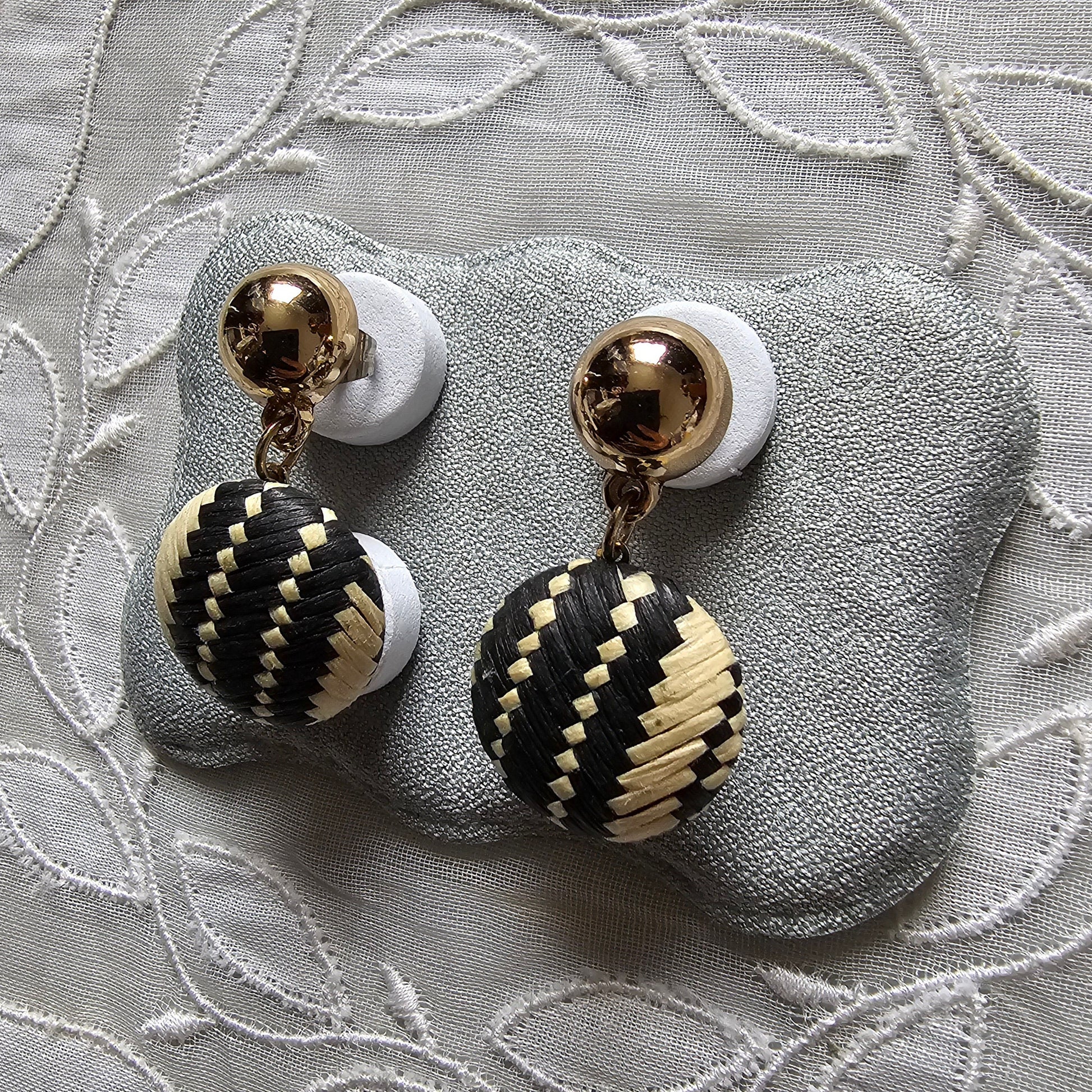 A sweet pair of lightweight drop earrings with woven straws on gold and silver tone jewellery metal alloy