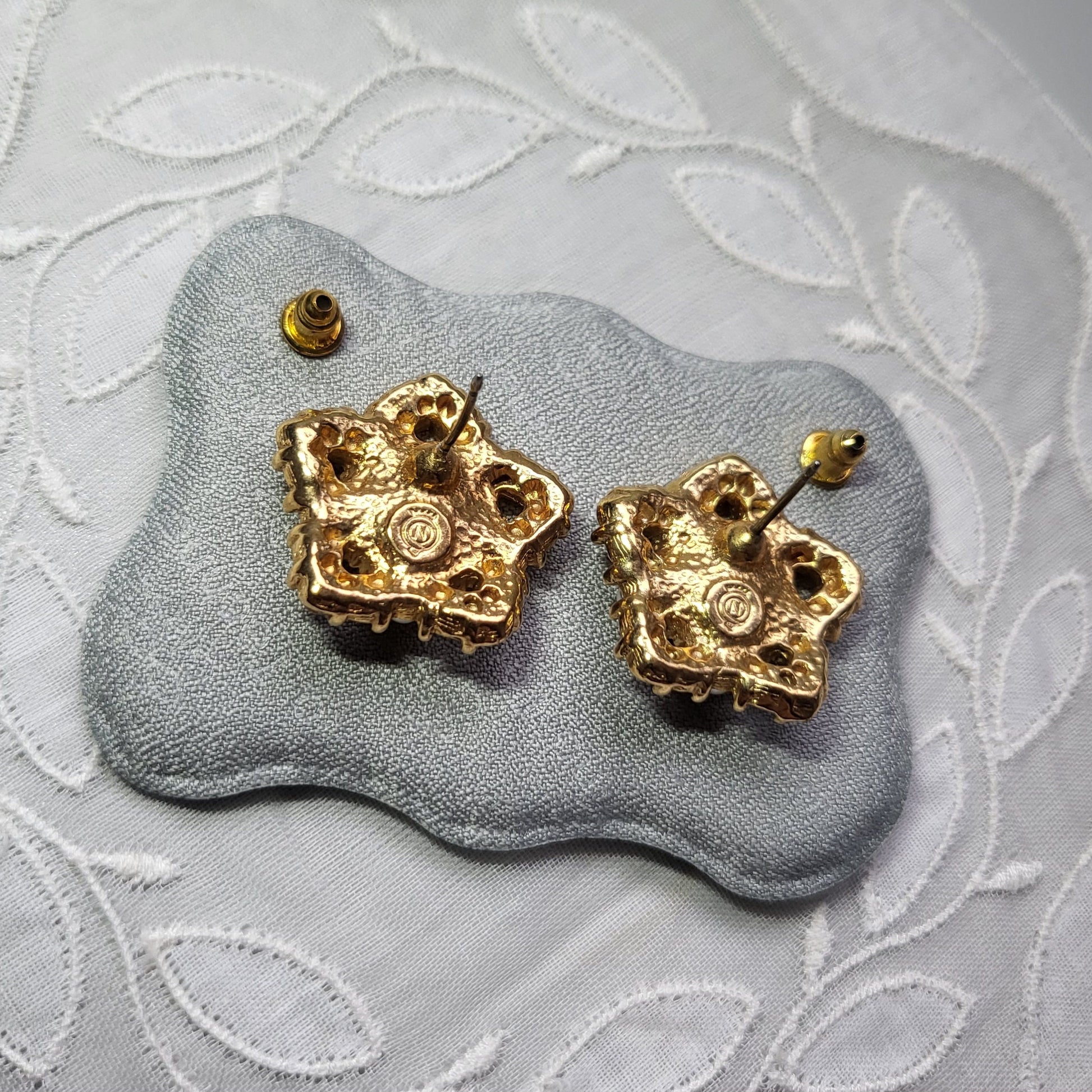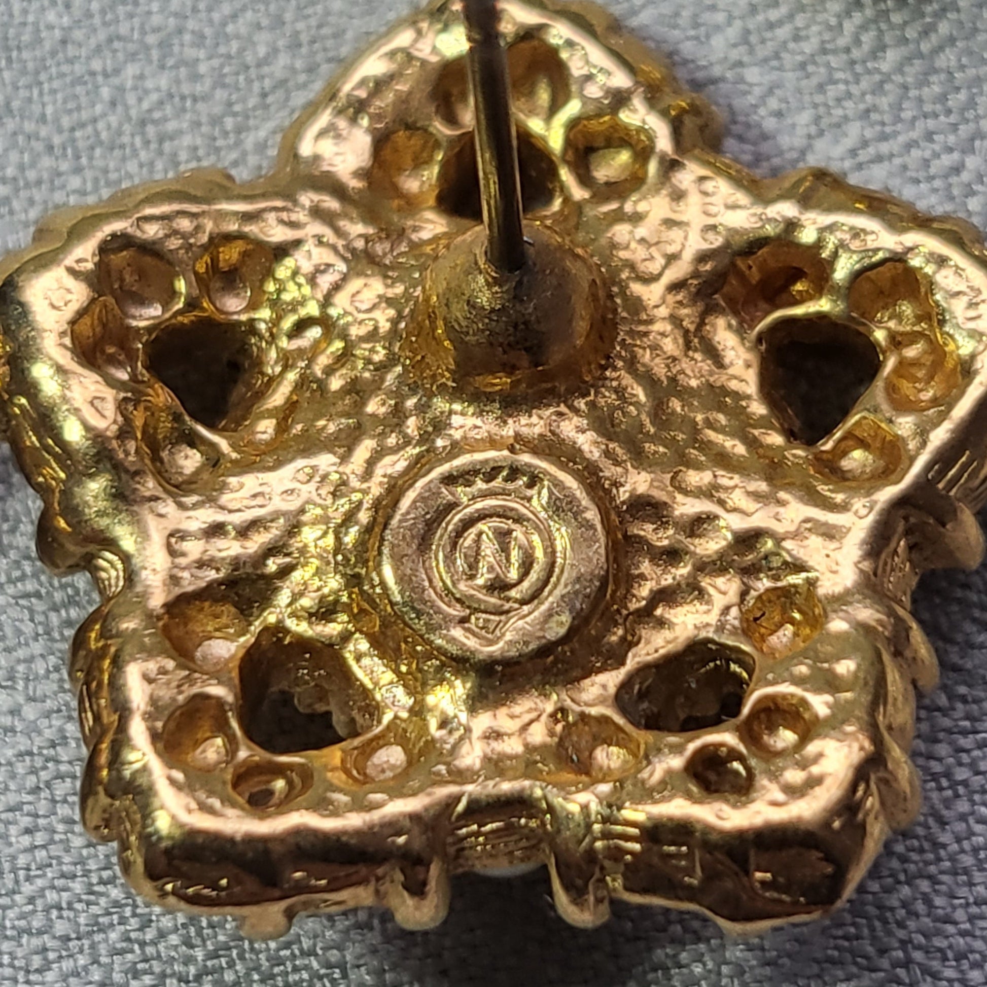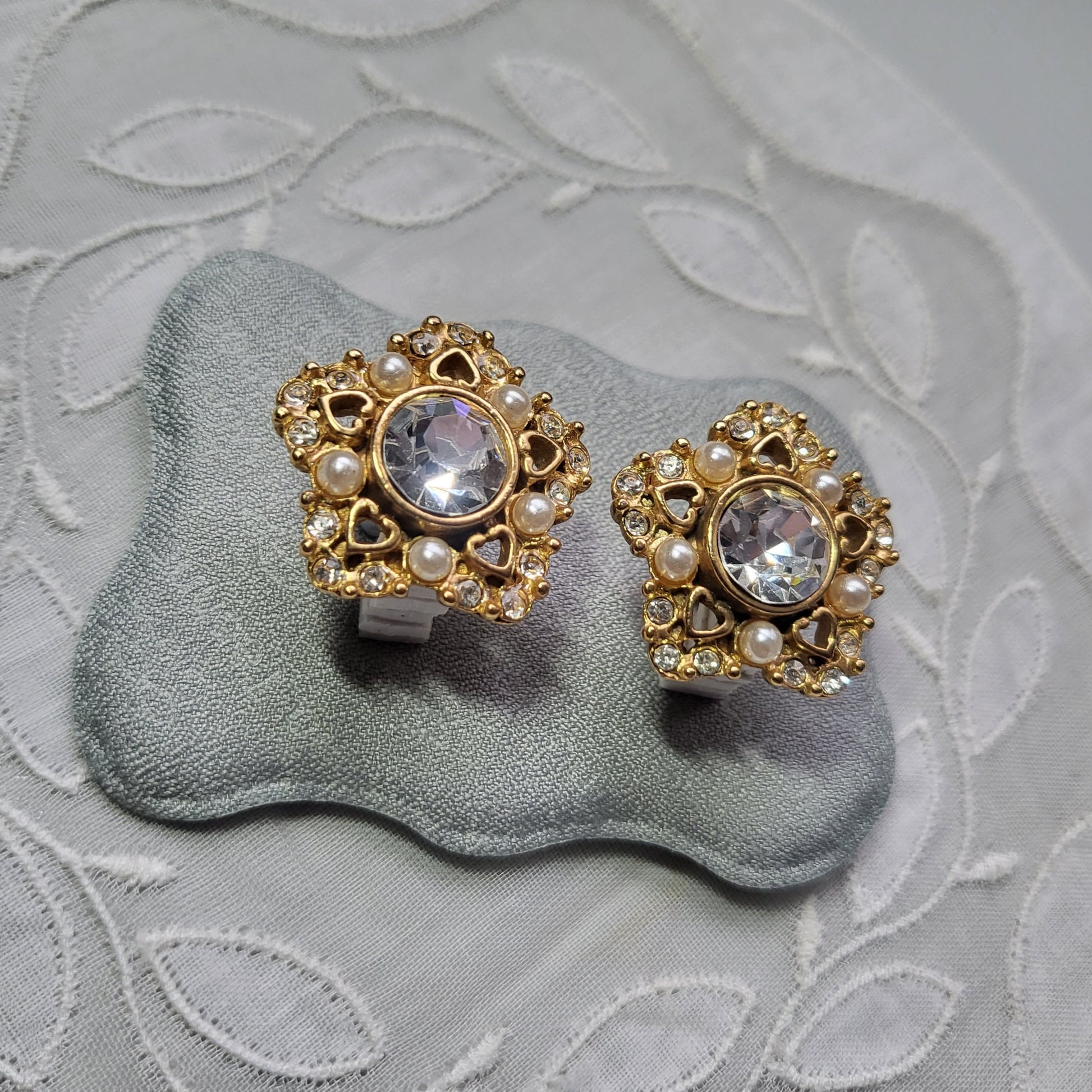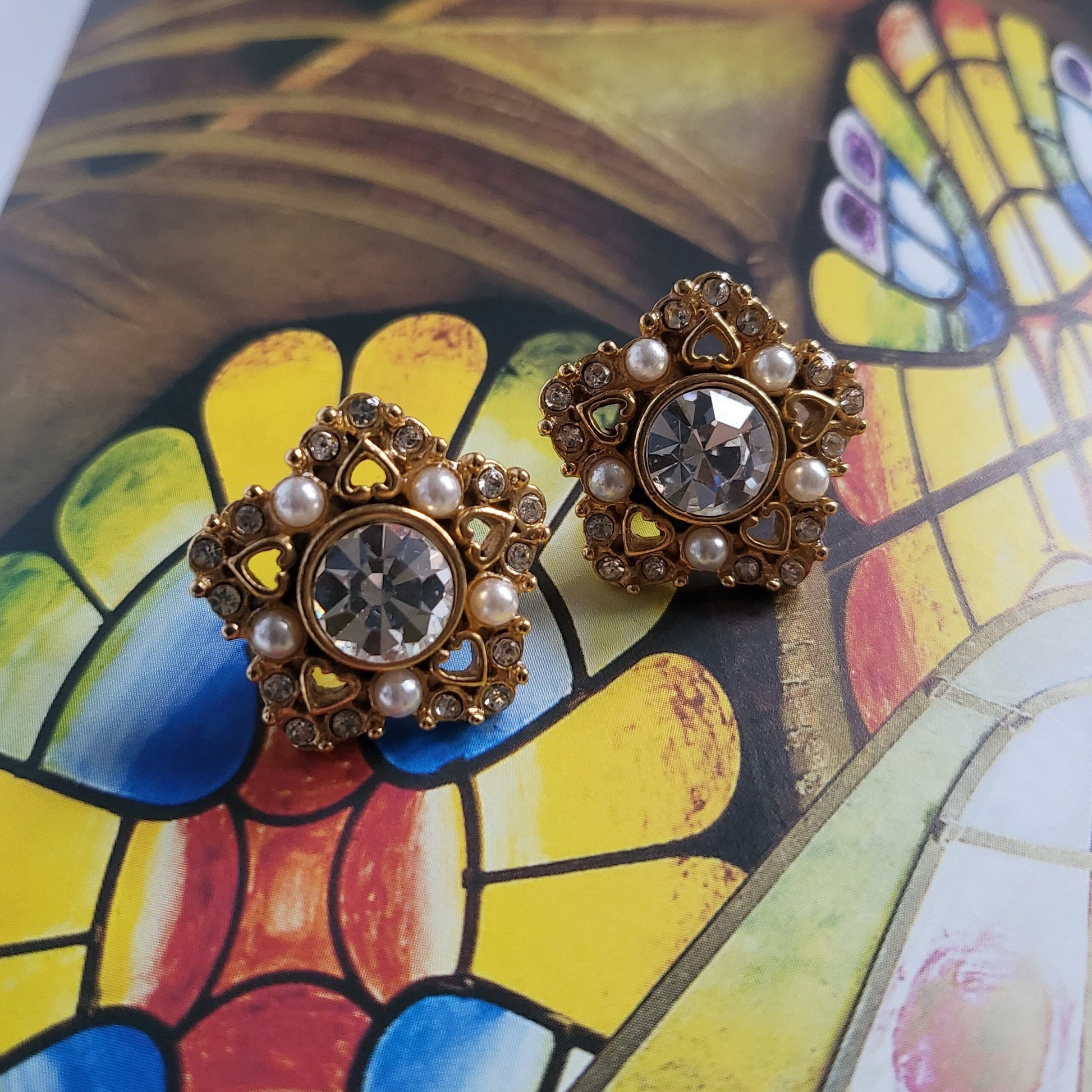 A stunning pair of star shaped earrings encrusted with crystals and pearls on gold plated metal