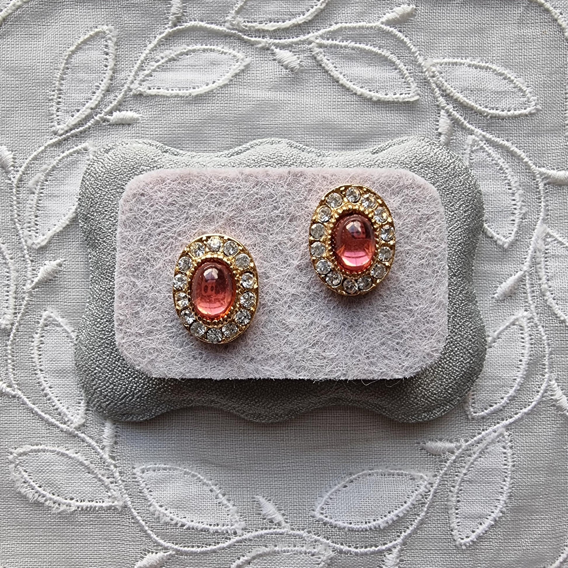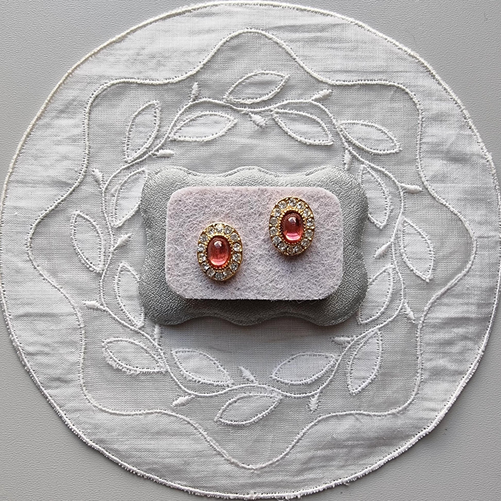 Posts - Pink Cabochon and Crystal Halo Stud Earrings
