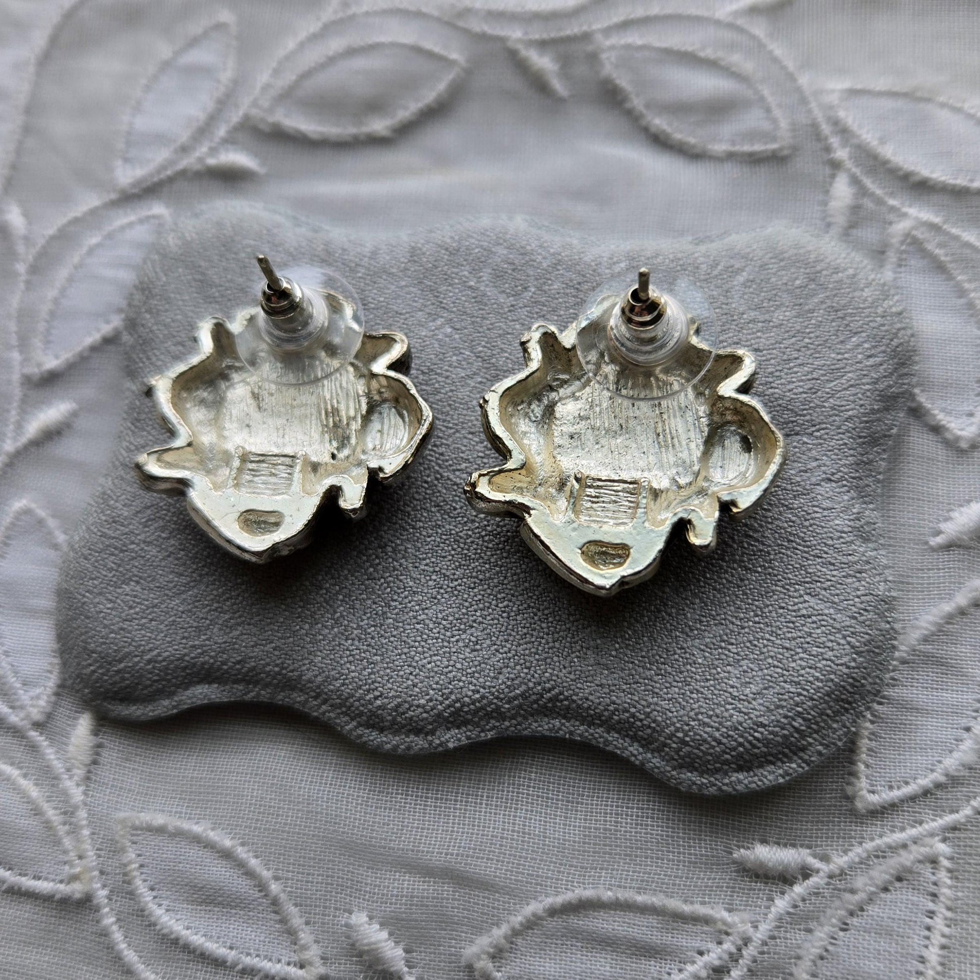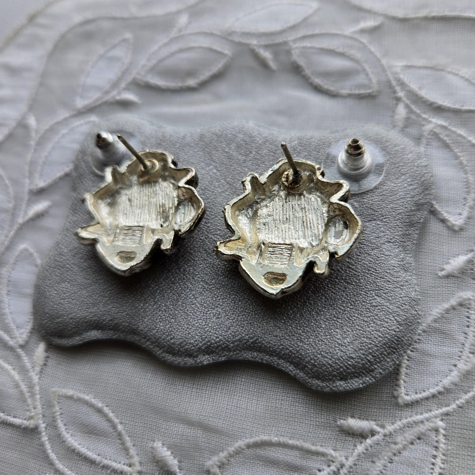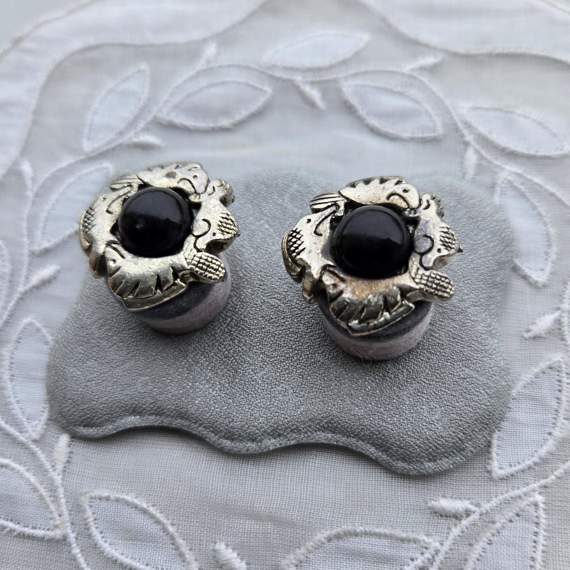 Posts - Silver Tone Black Cabochon Fish Earrings