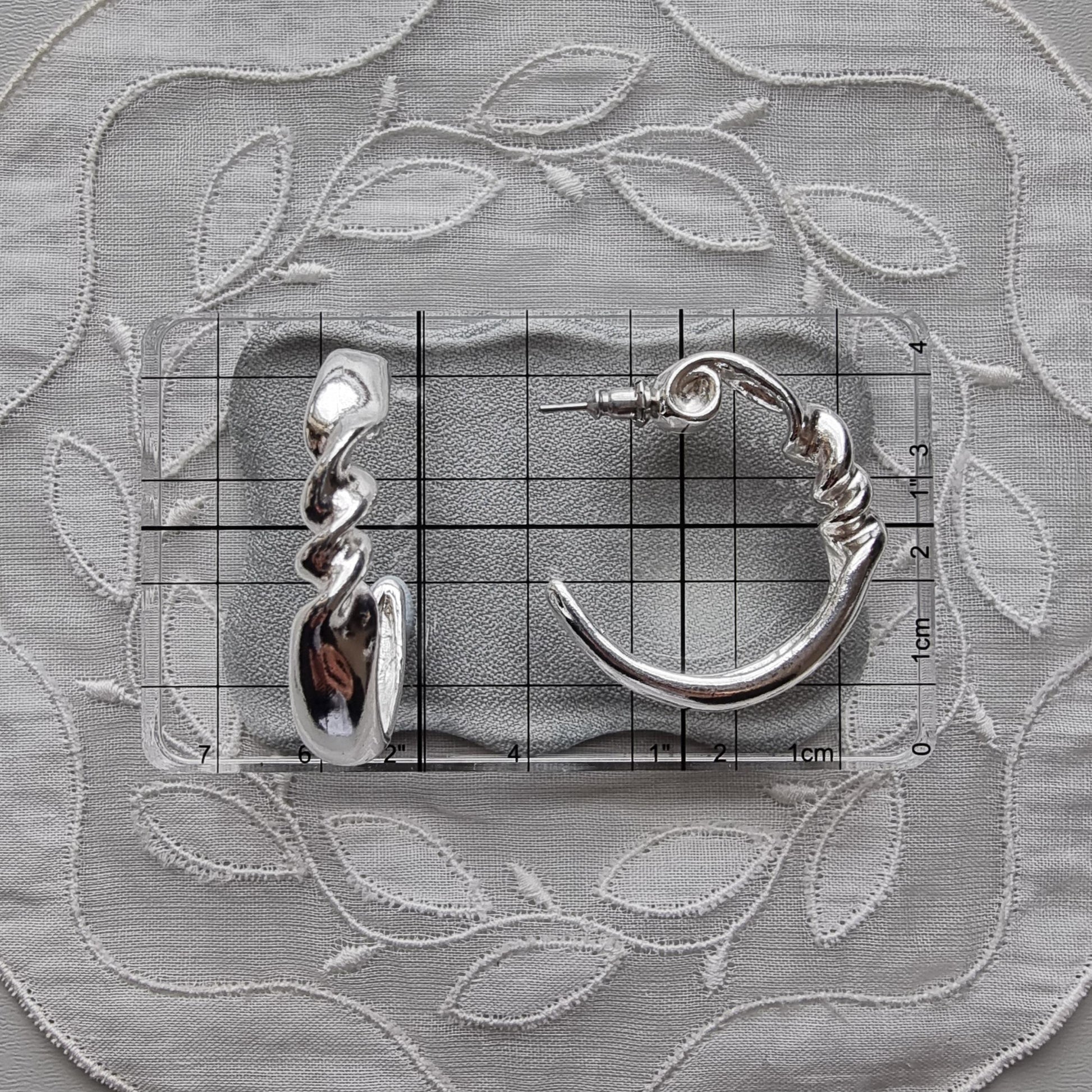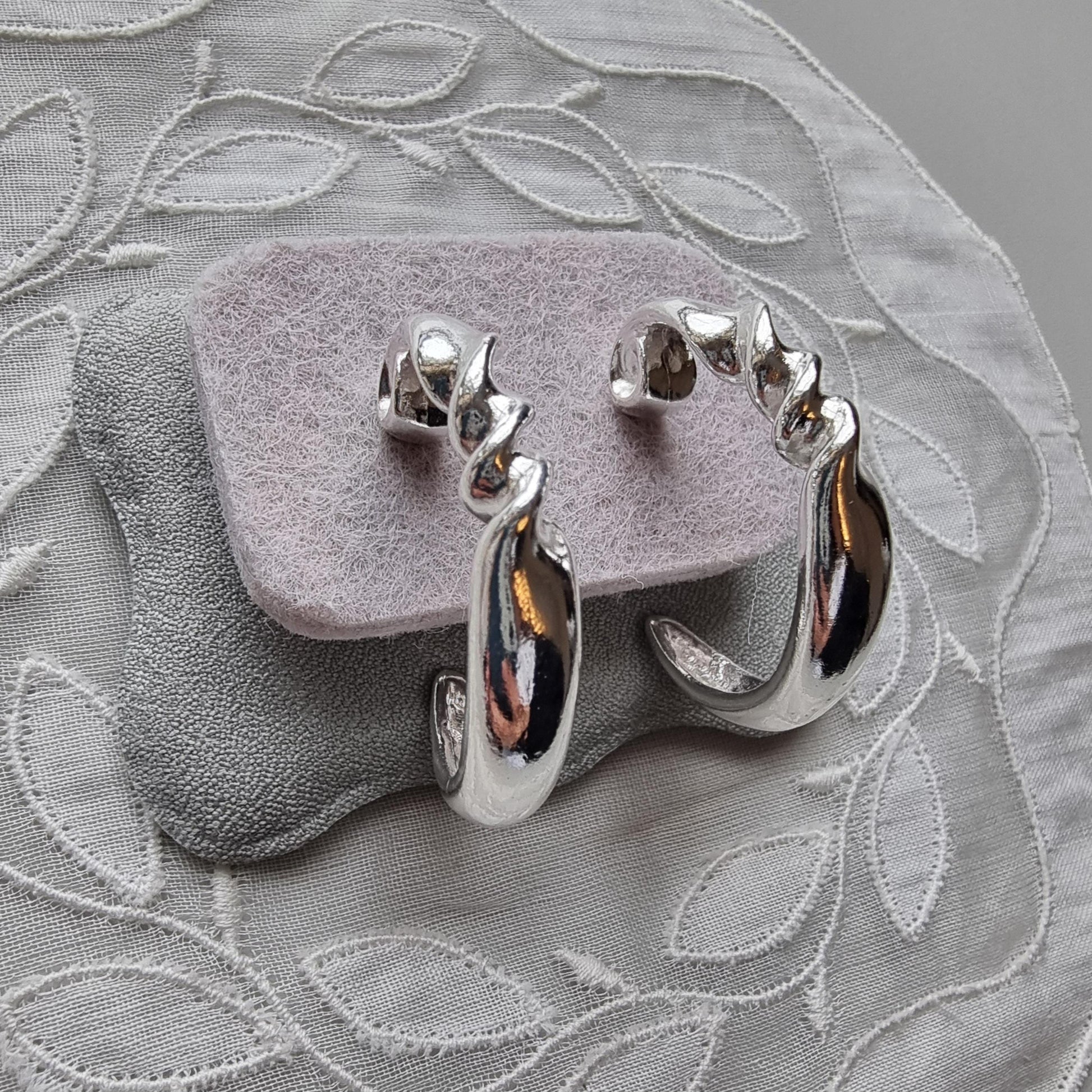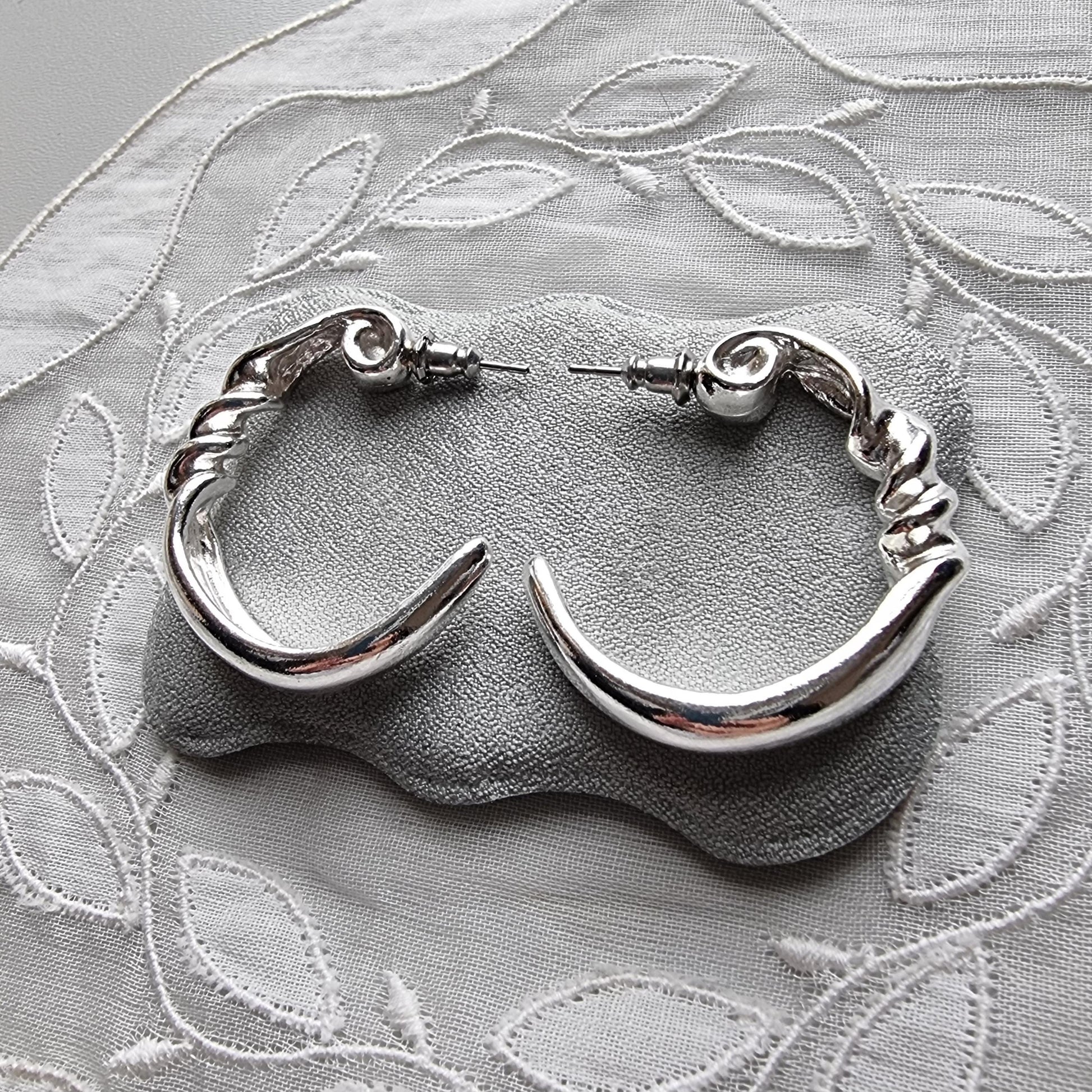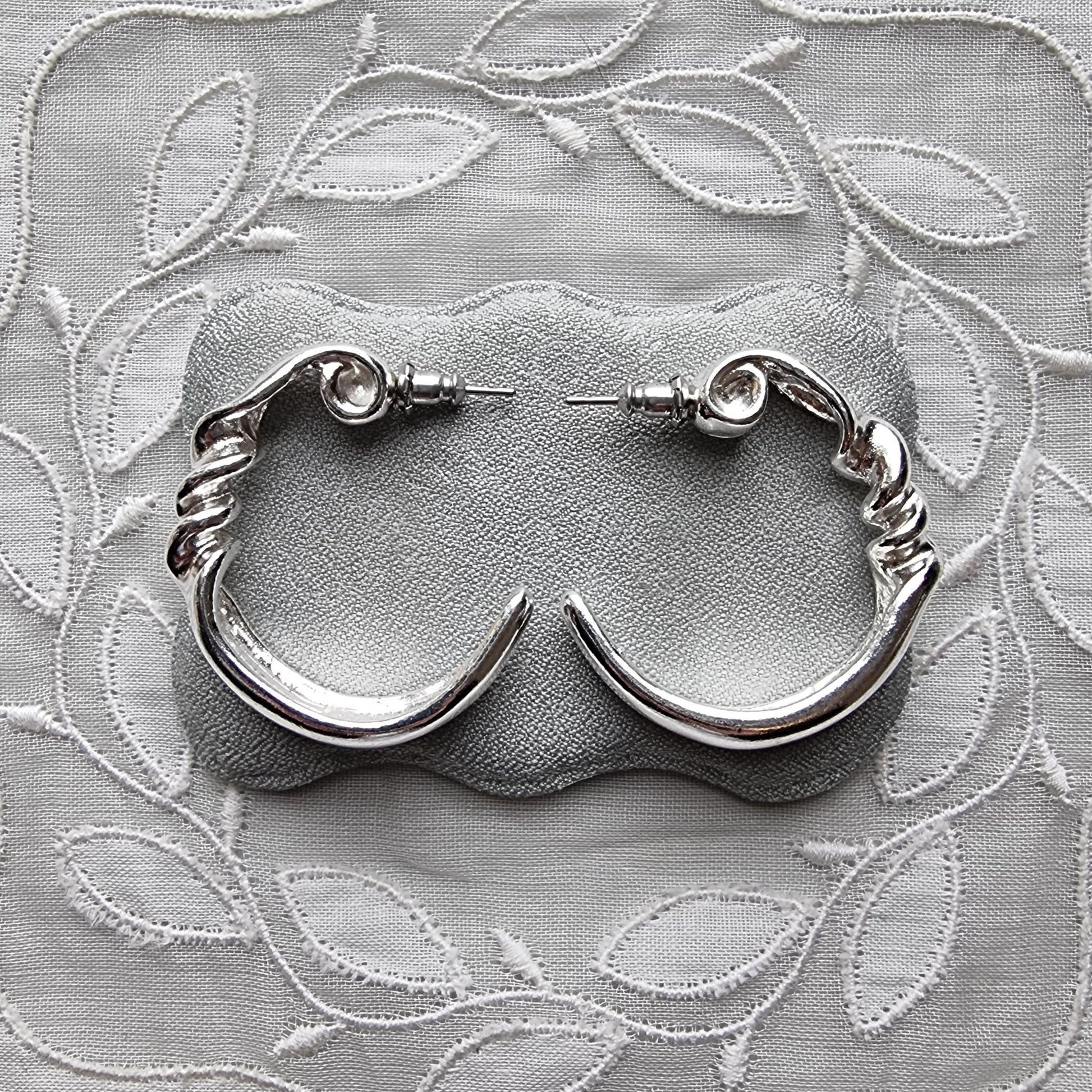 A gorgeous pair of stylised half hoop earrings in rhodium plated metal
