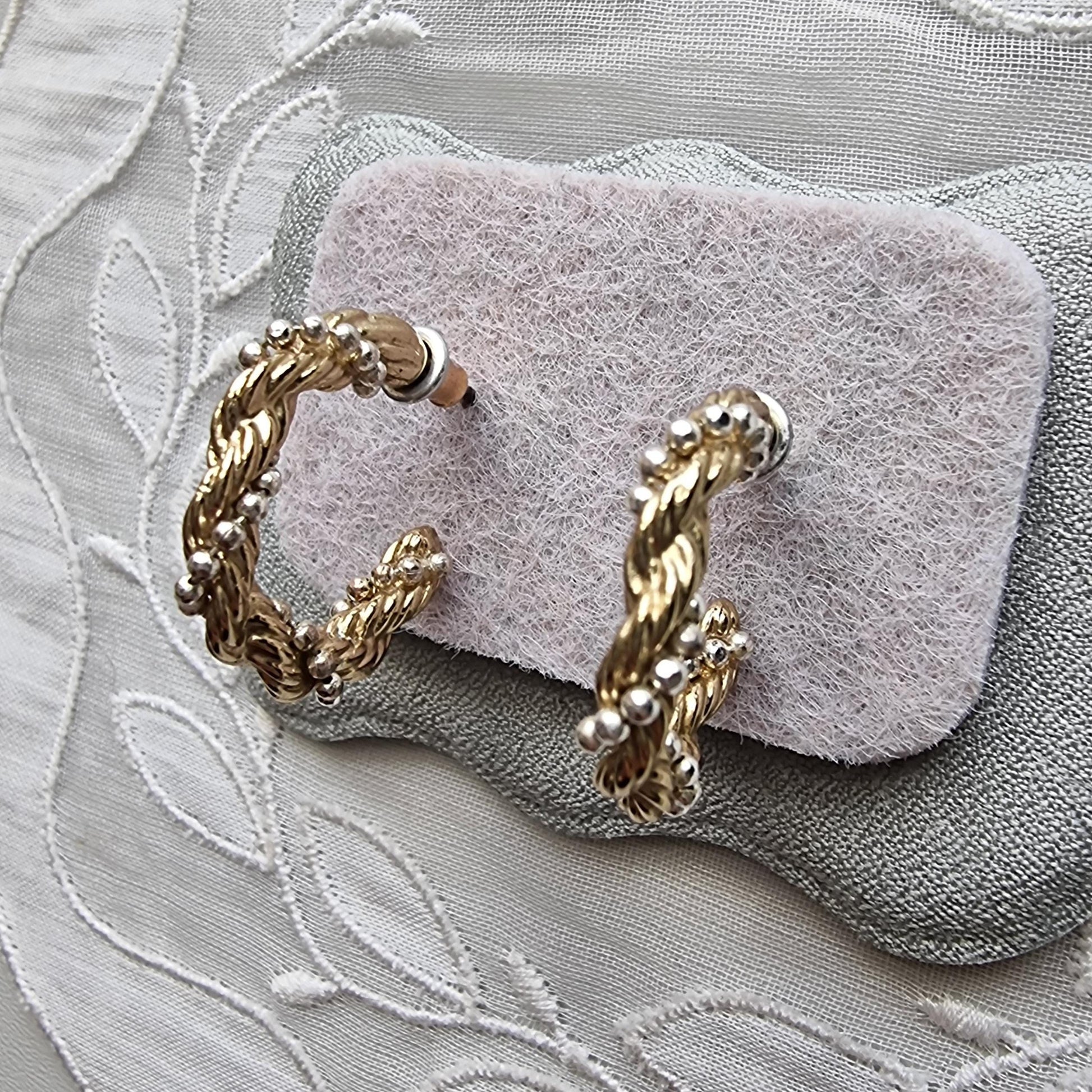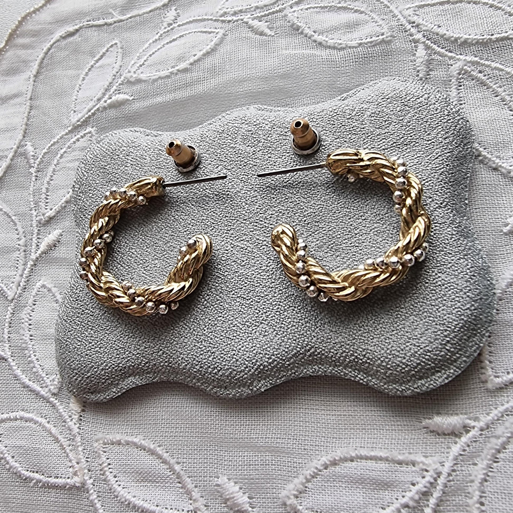 Posts - Small Gold Beaded Twist Hoop Earrings