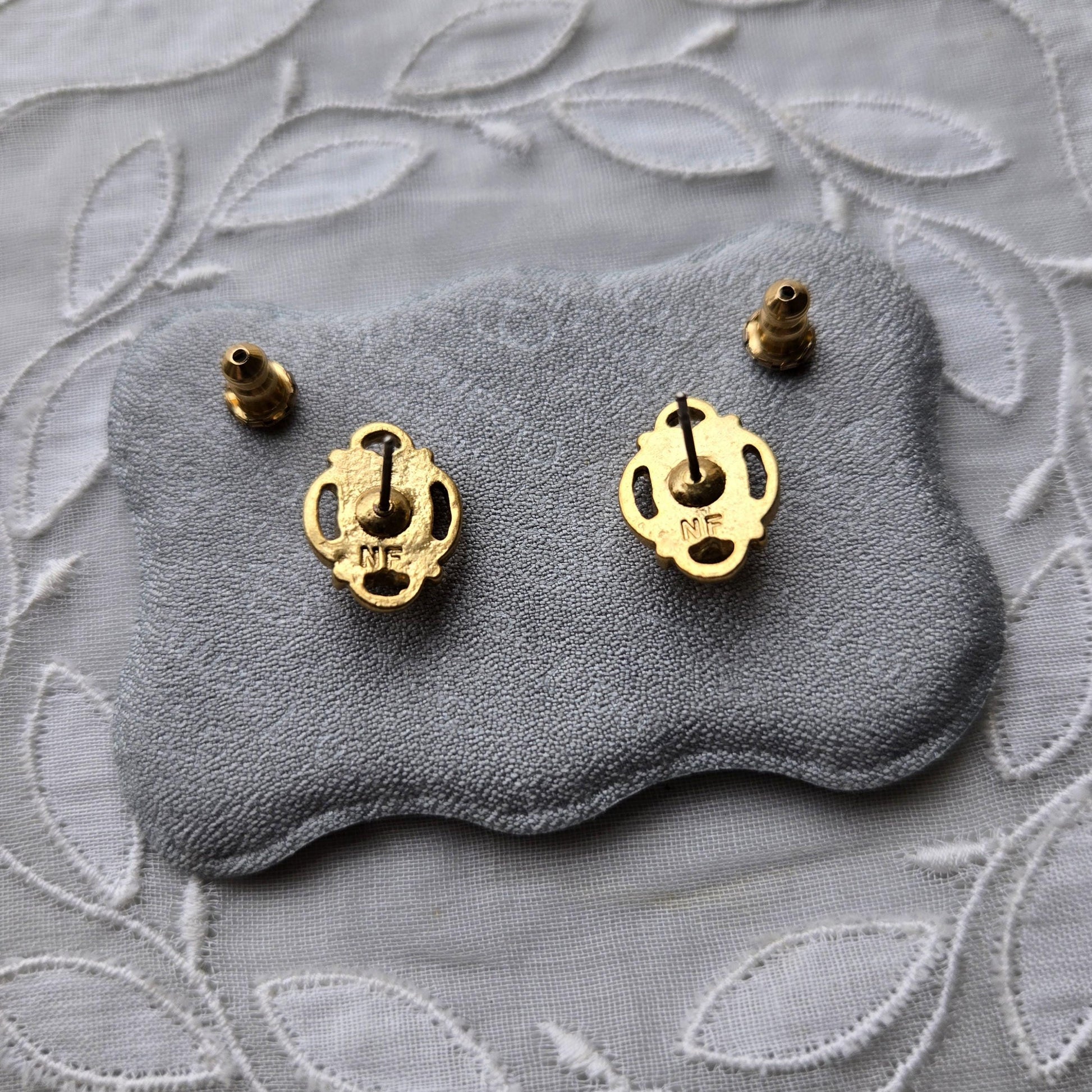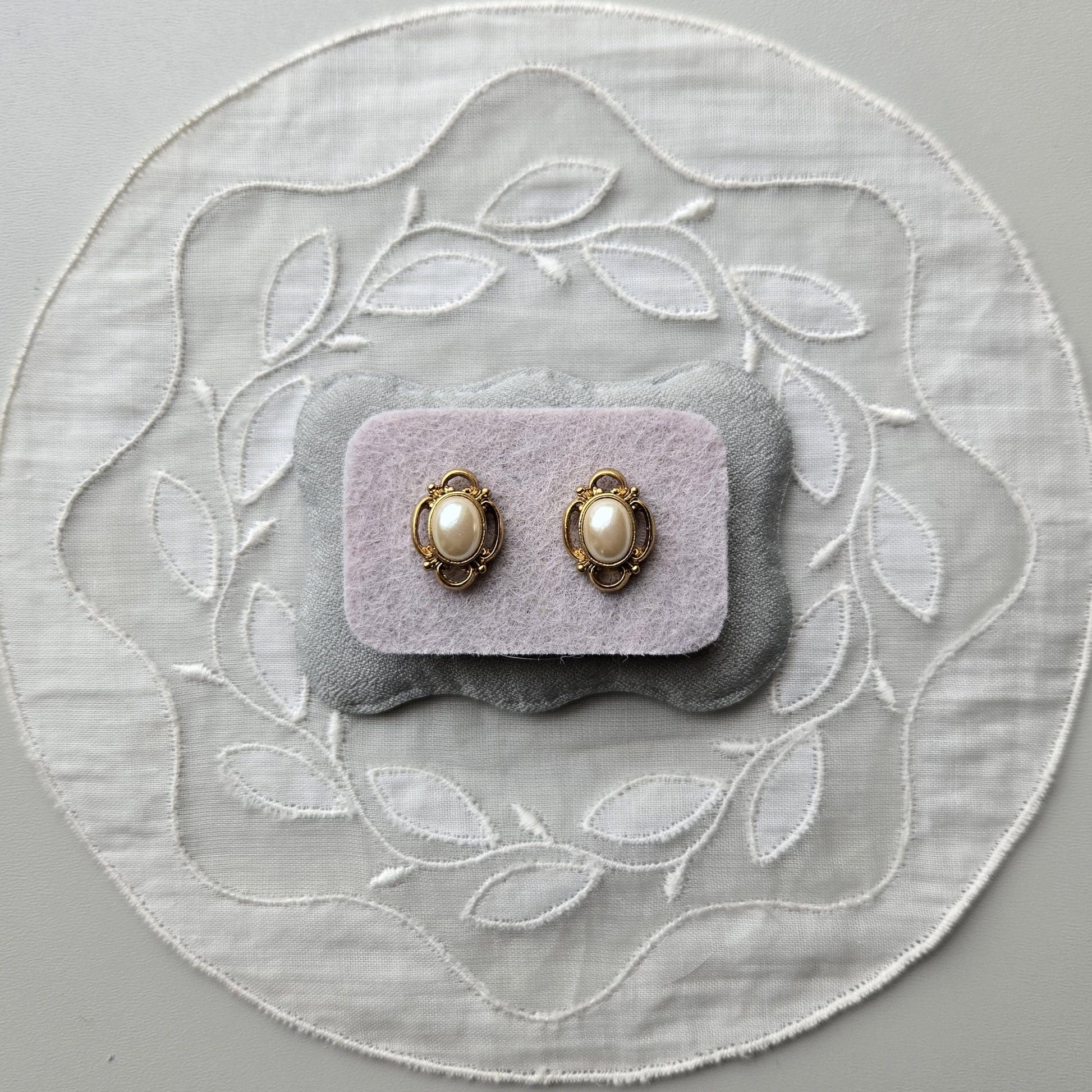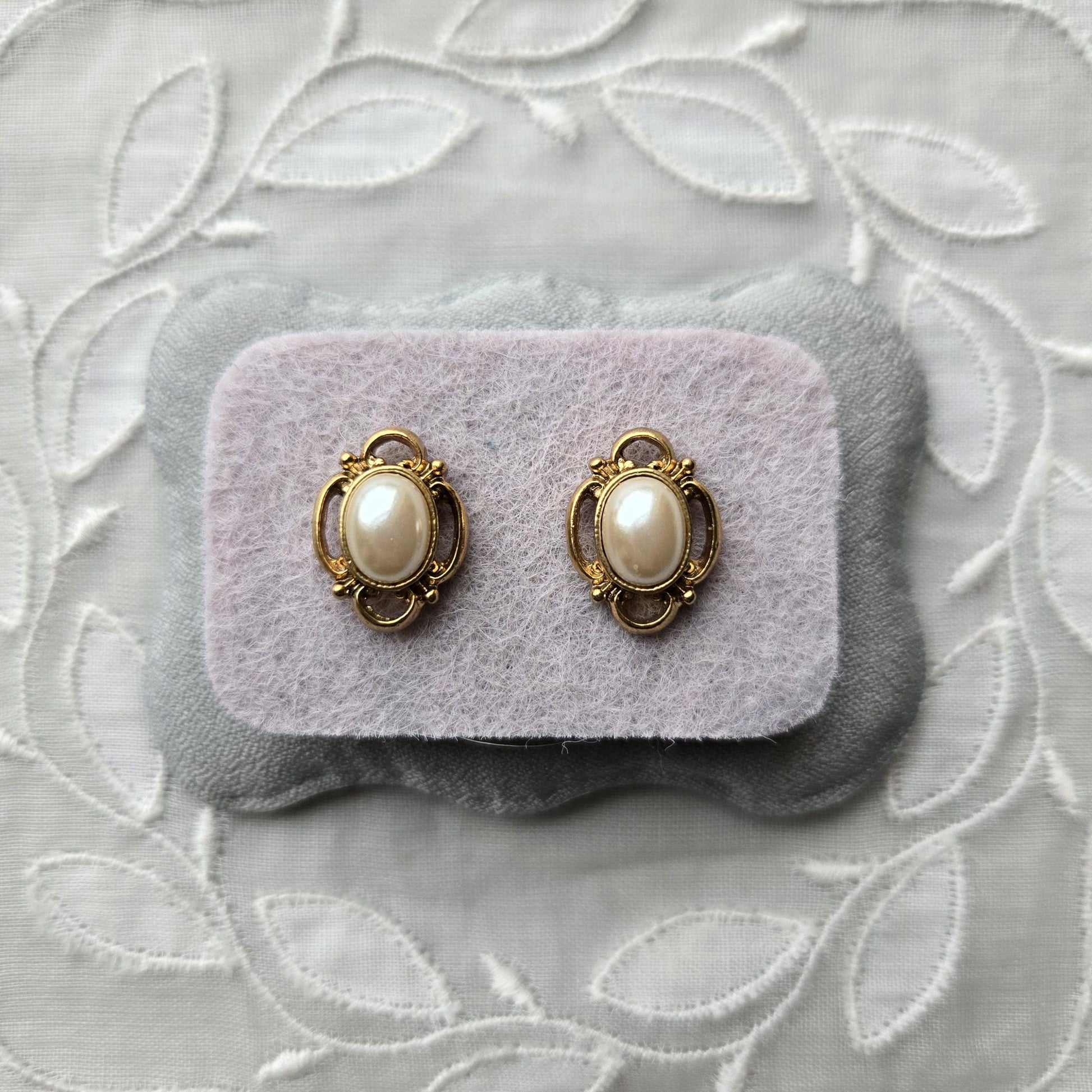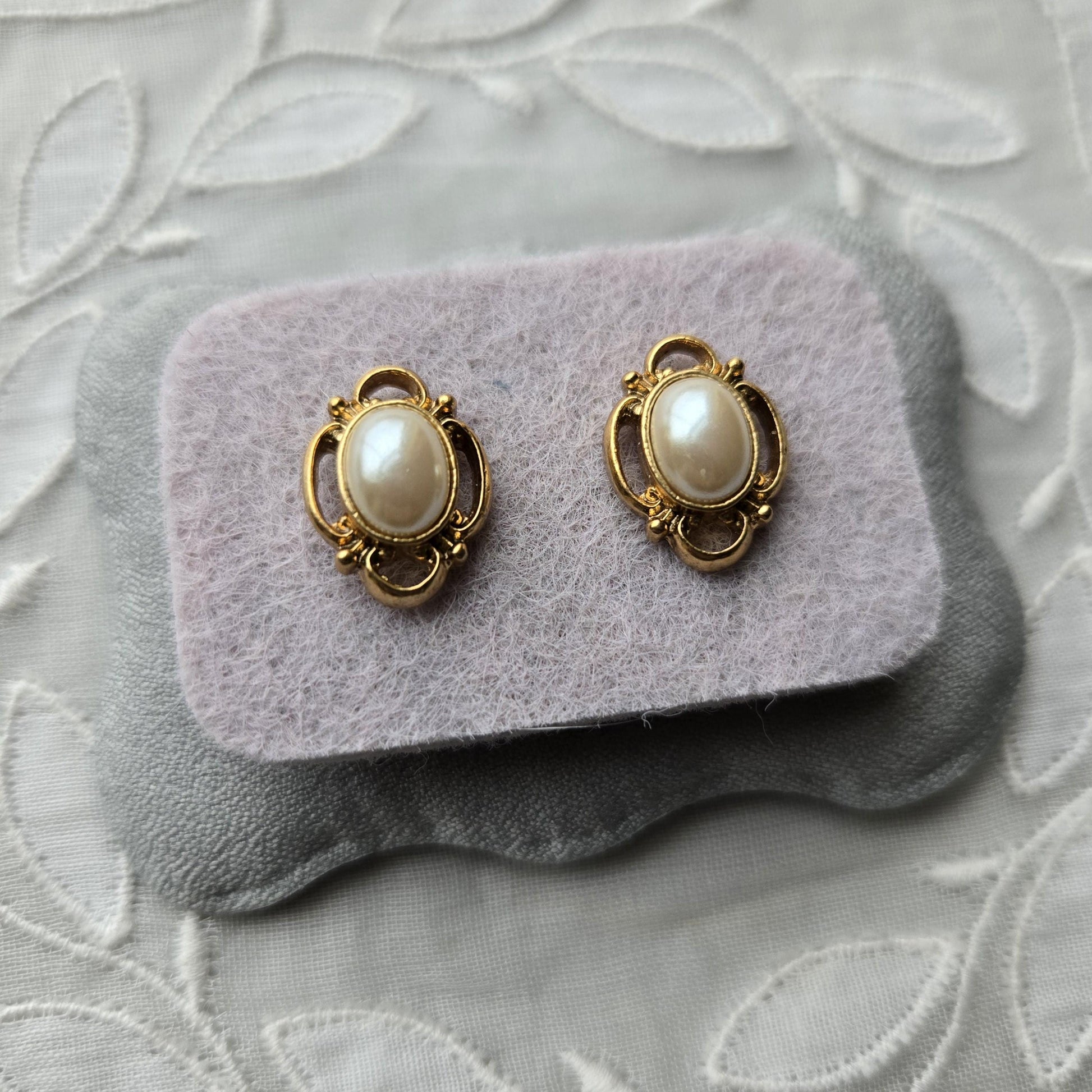 A gorgeous pair of small stud earrings with faux pearls on gold plated metal