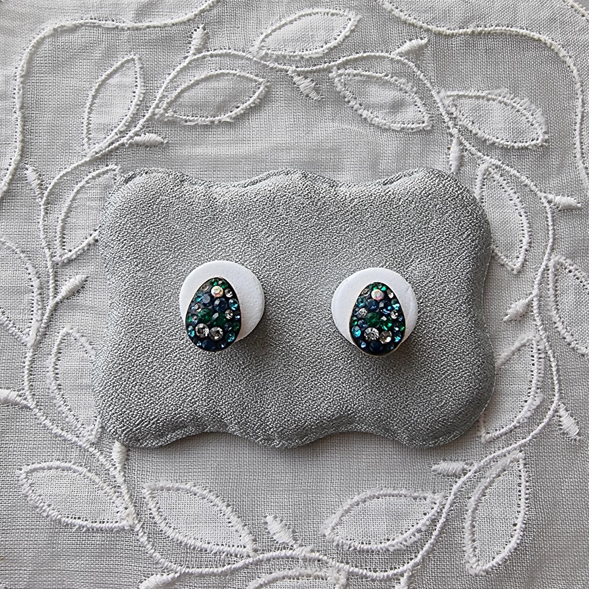 Posts - Swarovski Crystal Blue and Green Egg Stud Earrings