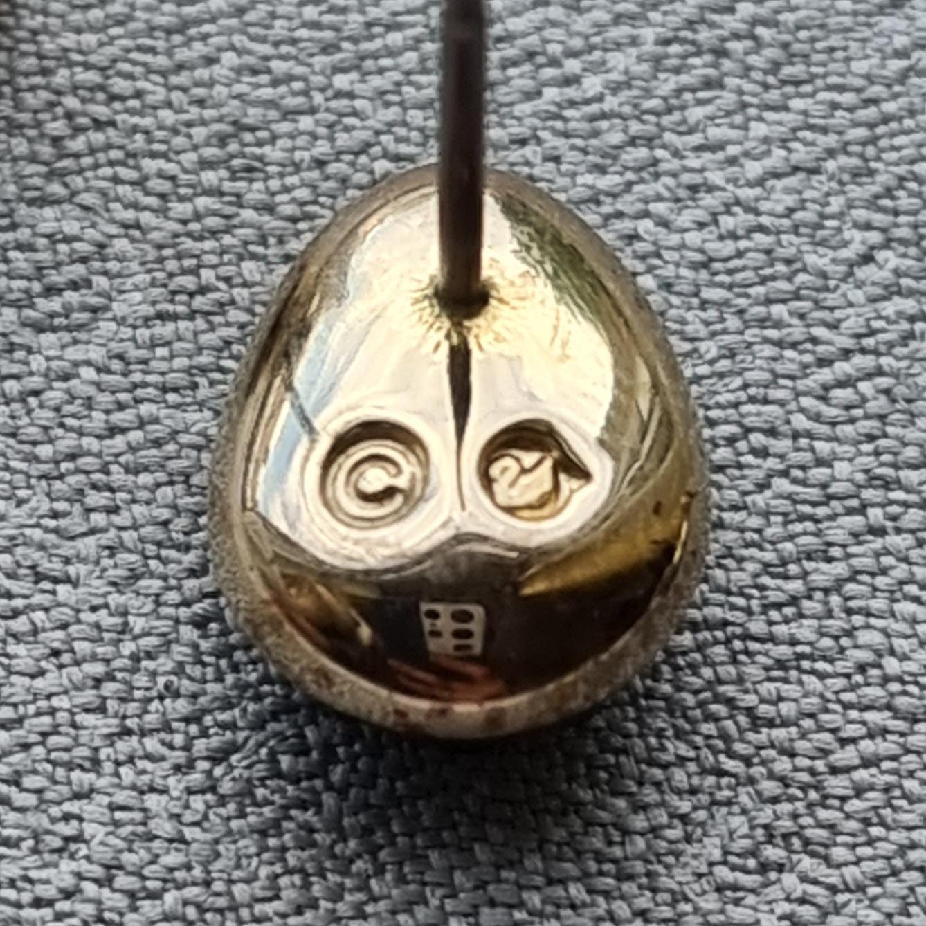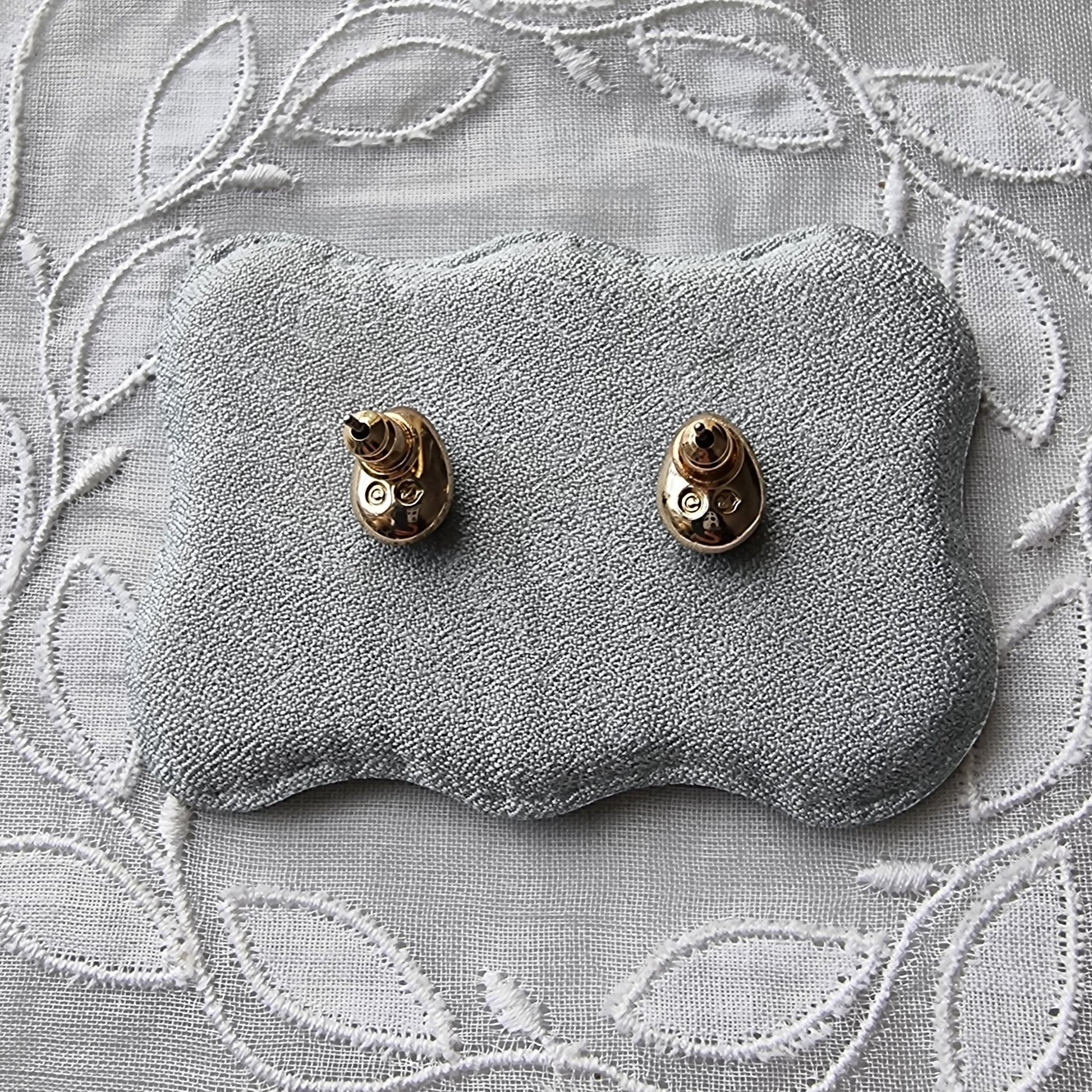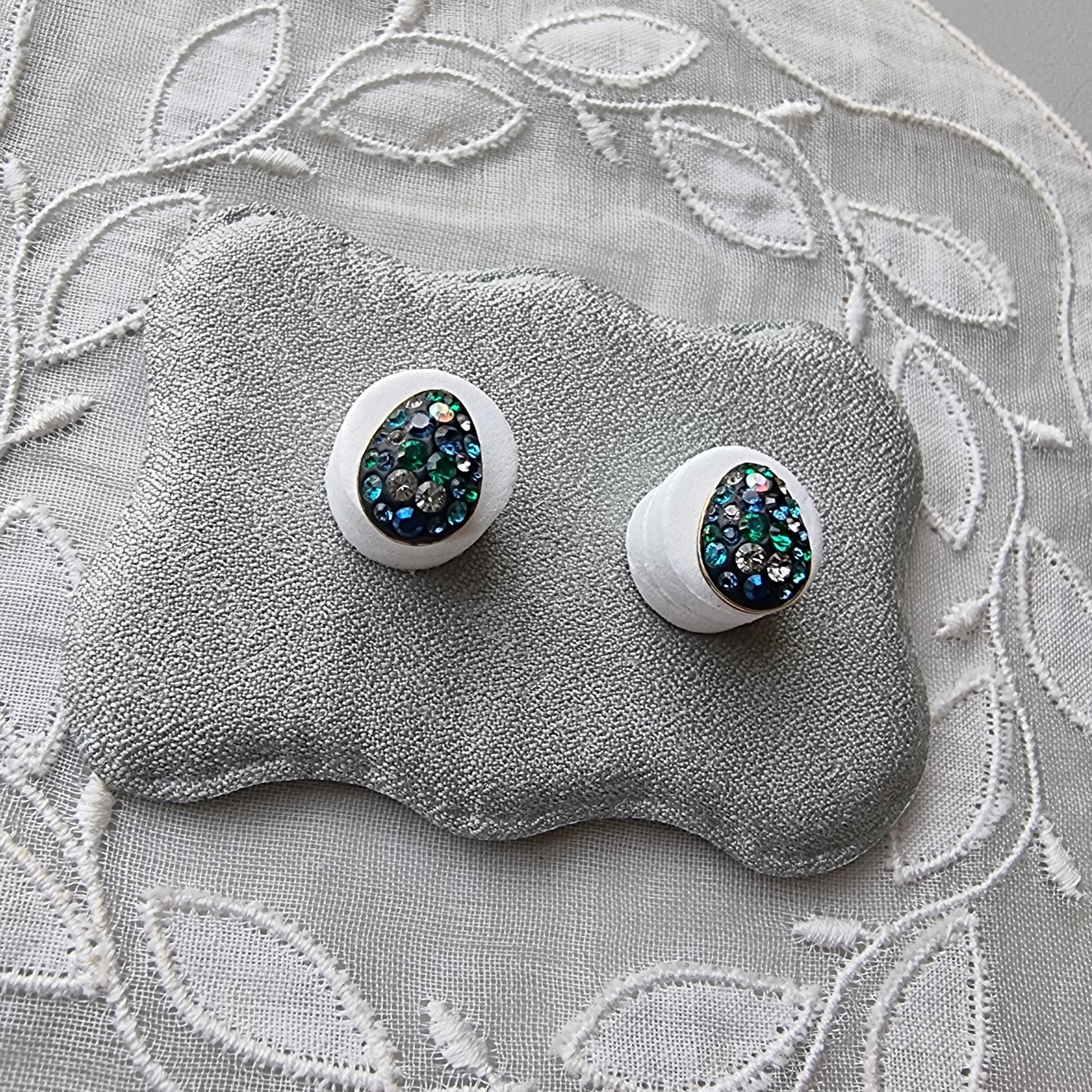 A small egg shaped stud earrings by Swarovski with blue green and aurora borealis crystals on gold plated metal