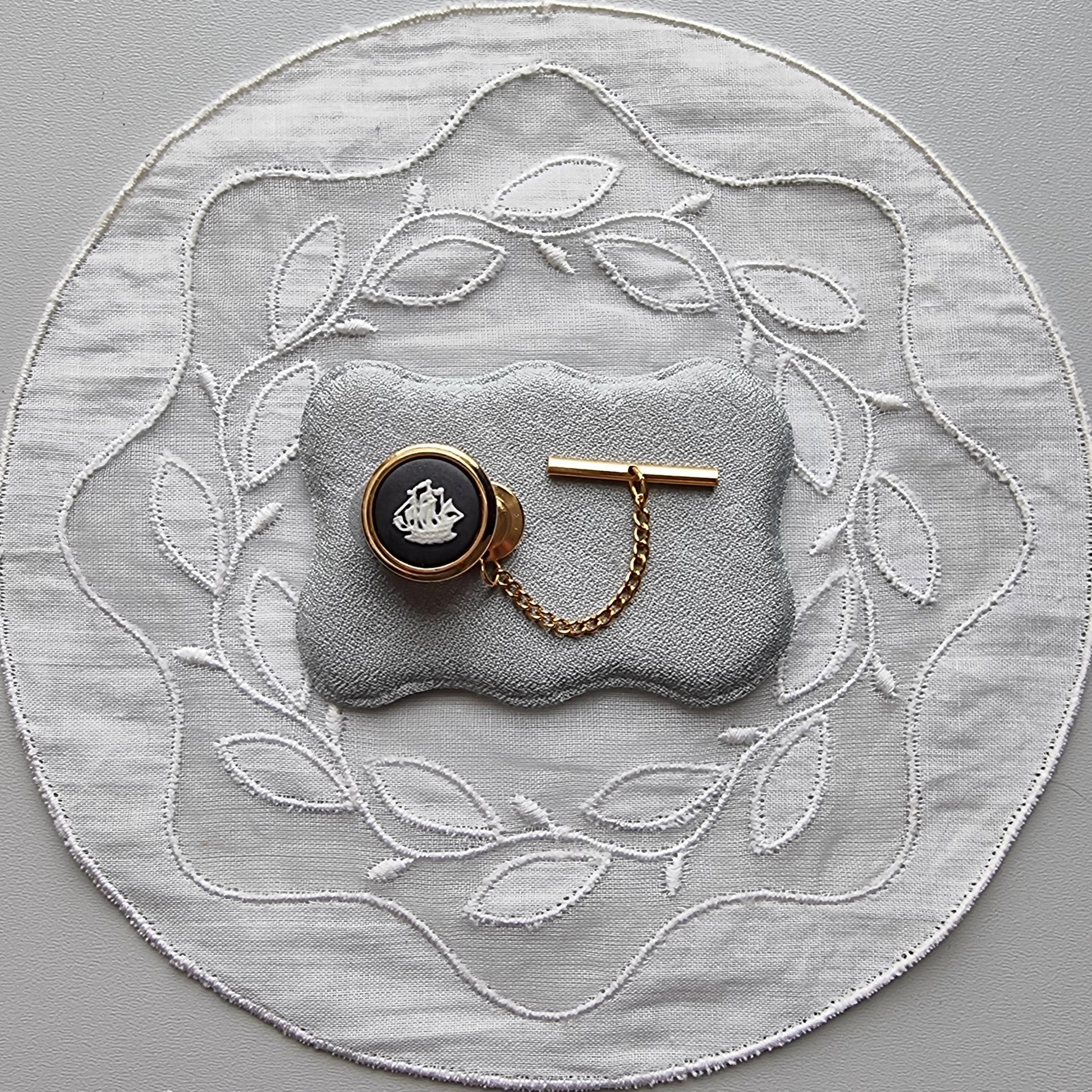 Tie Pin - Wedgwood Black Jasperware Sailing Ship Tie Pin